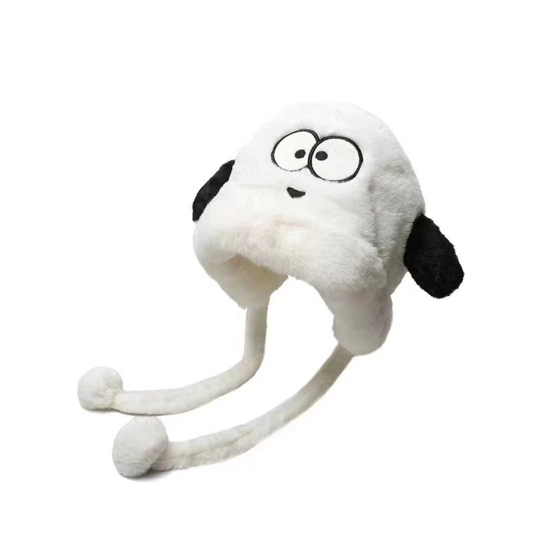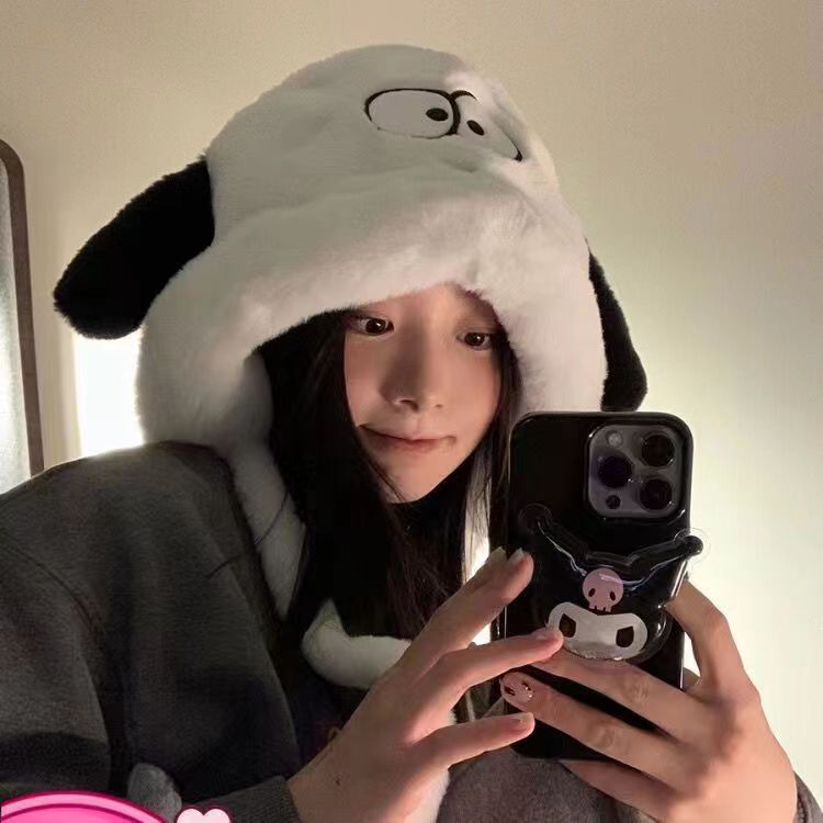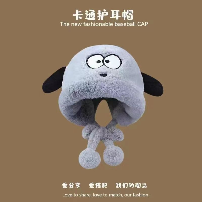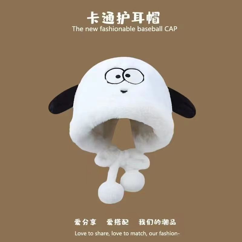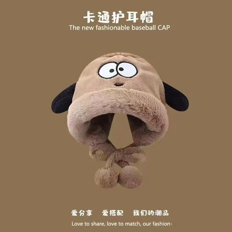 2023可爱卡通小狗毛绒帽子女萌保暖护耳秋冬帽加厚围脖雷锋帽