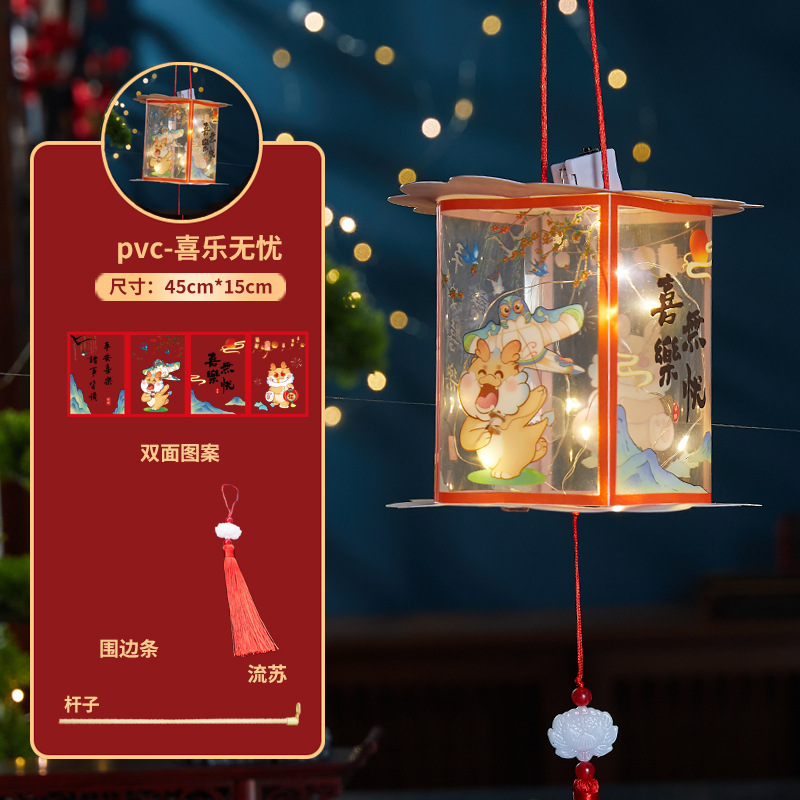 2024龙年新年灯笼diy材料包pvc花灯元宵节儿童手提发光宫灯元旦