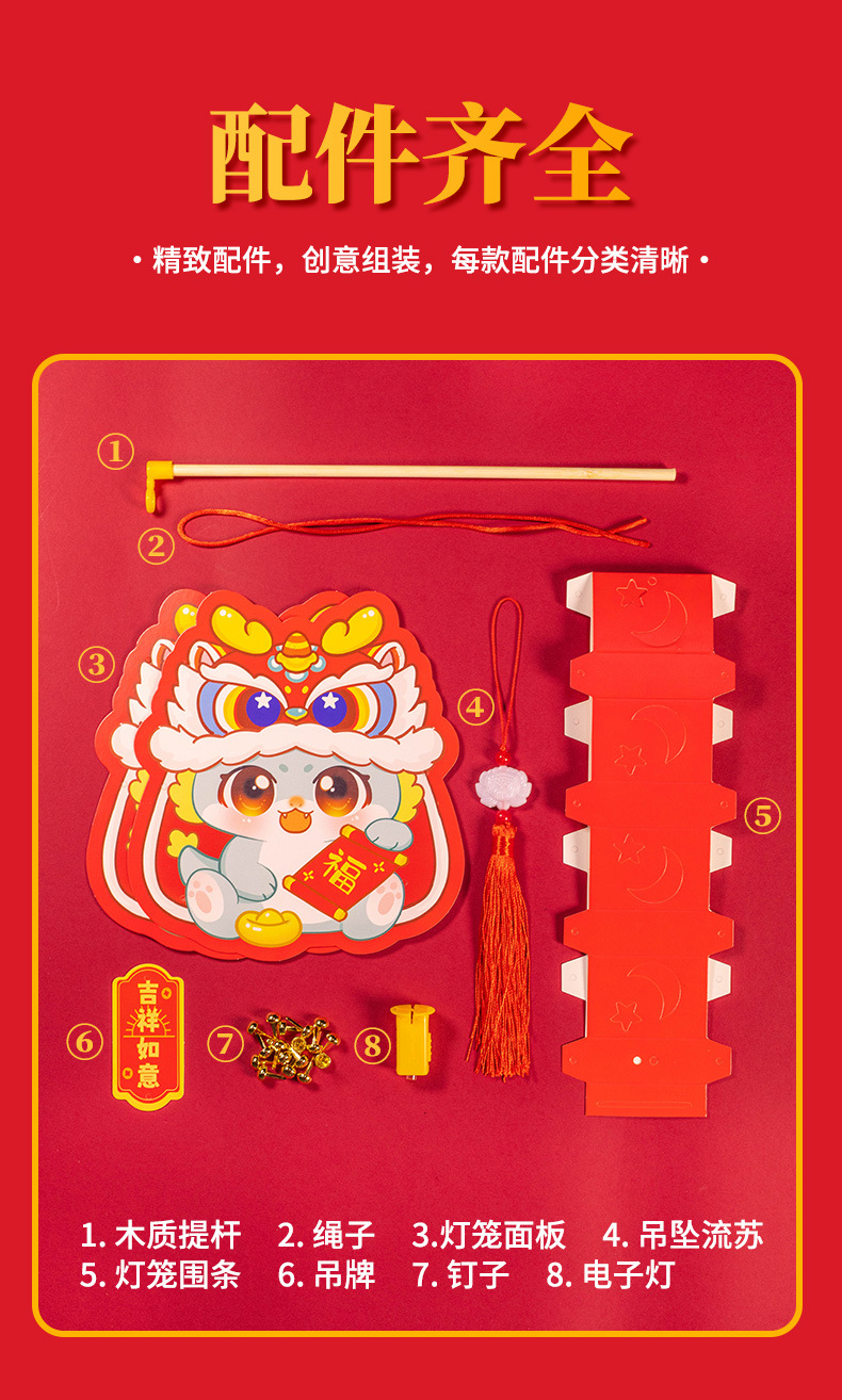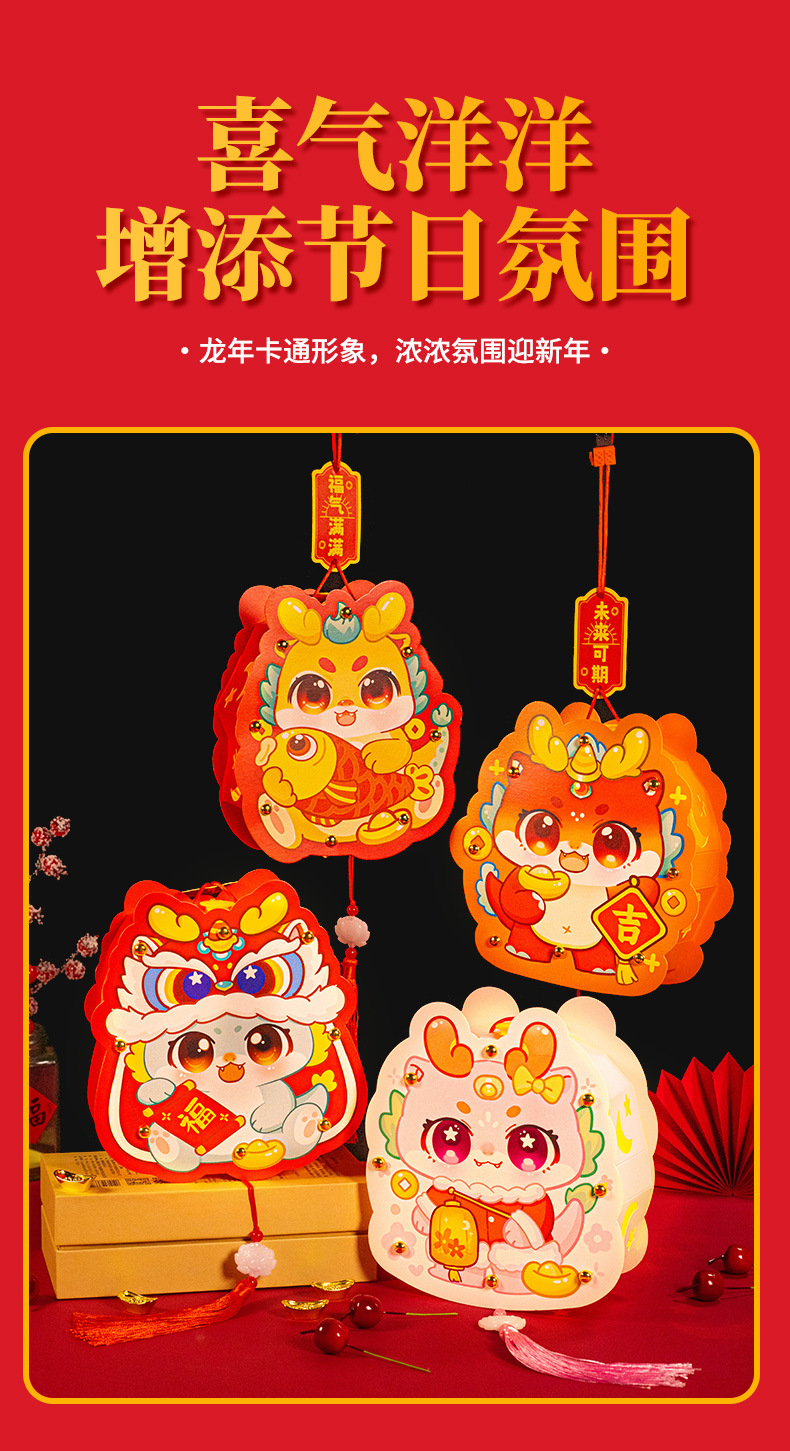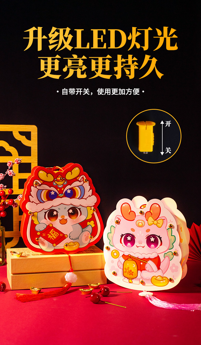 春节新年DIY手工龙年灯笼发光手提灯材料儿童新款花灯元宵节礼品