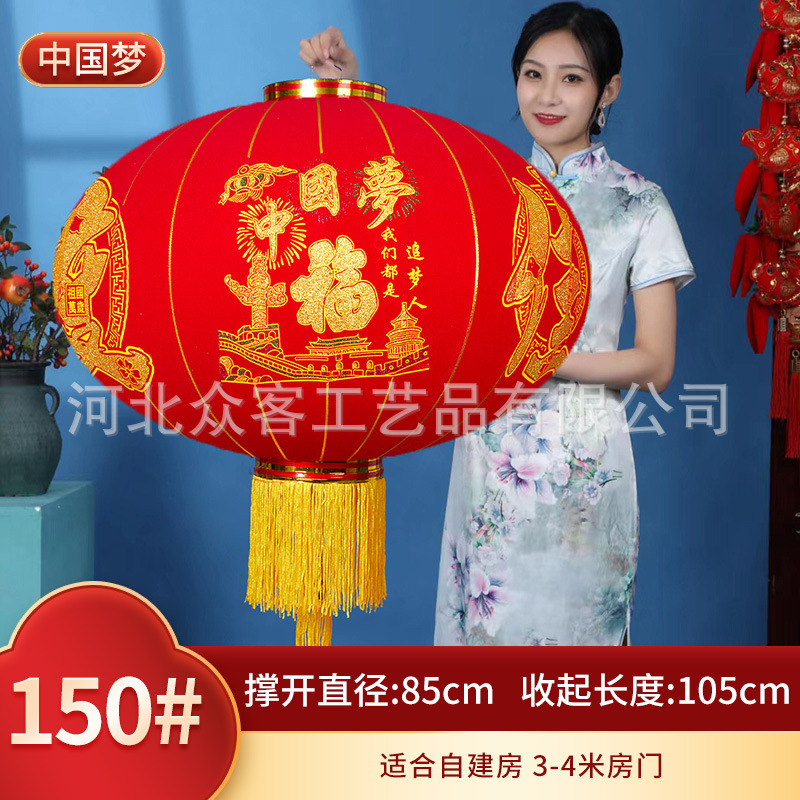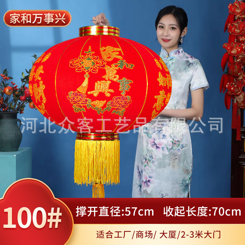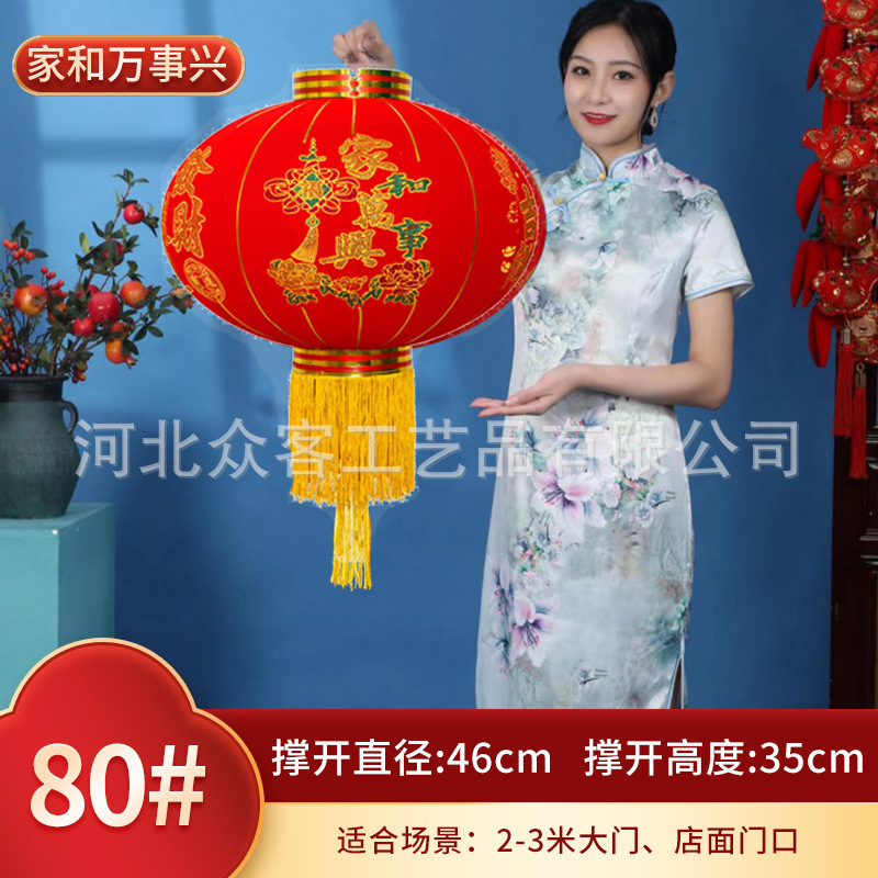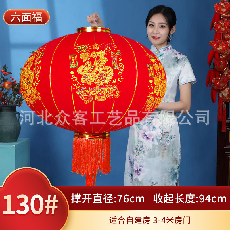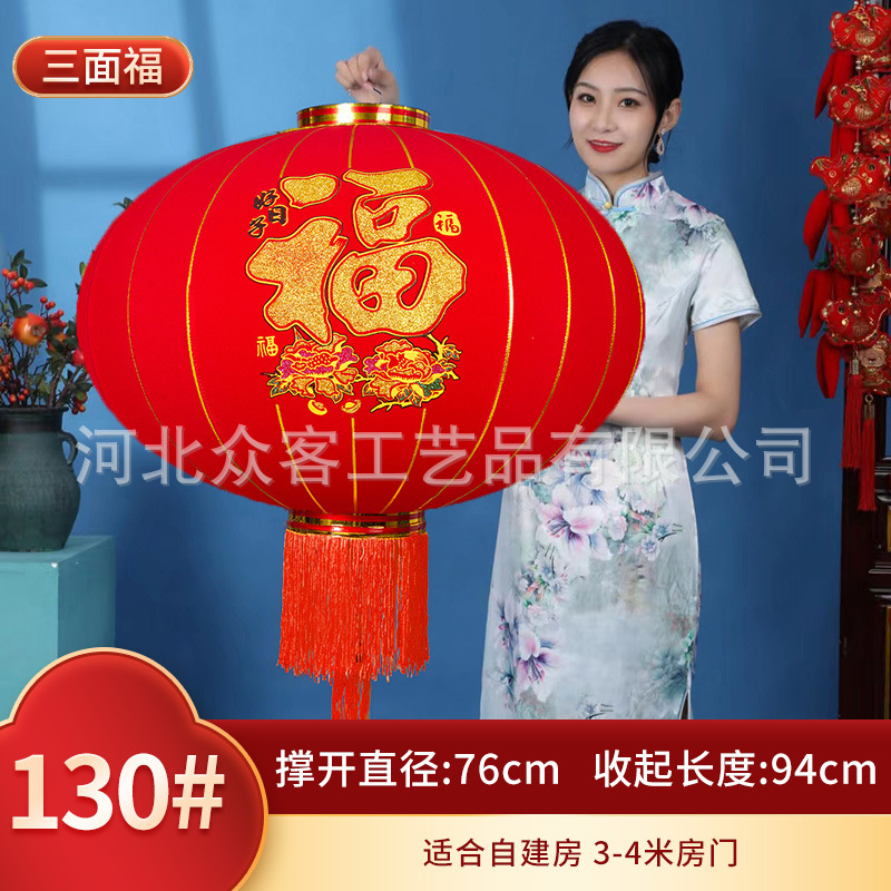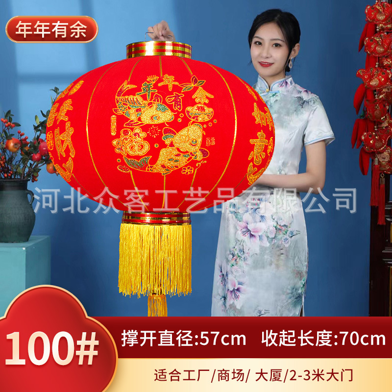 新年大红灯笼一对春节过年植绒布挂饰阳台户外大门口喜庆装饰灯笼