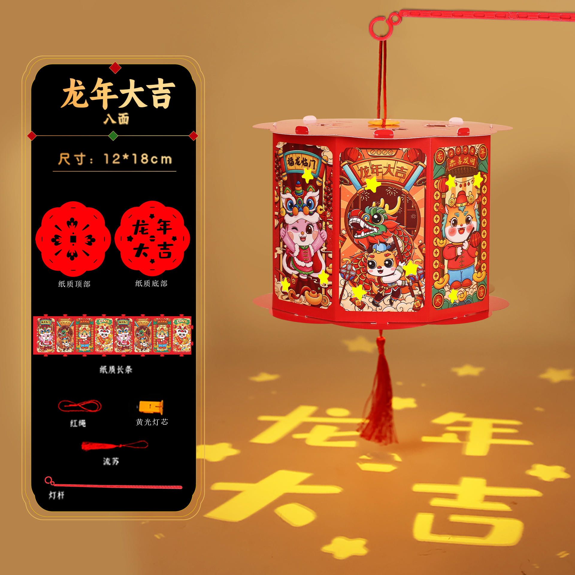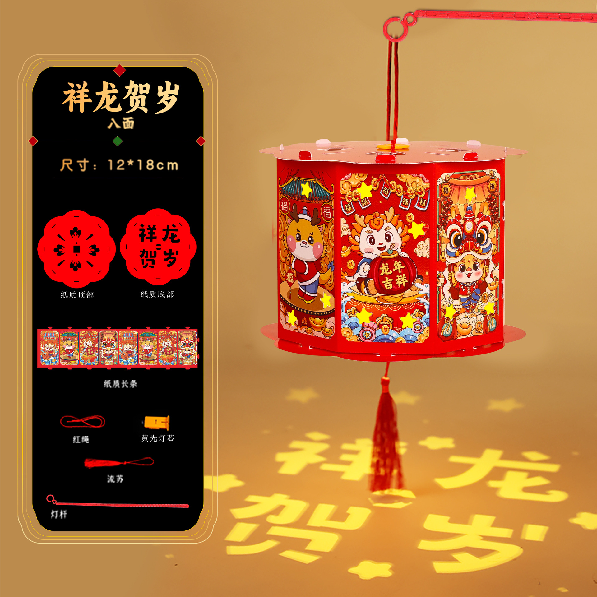 春节新年灯笼手工diy儿童投影走马灯制作材料包龙年元旦花灯古风