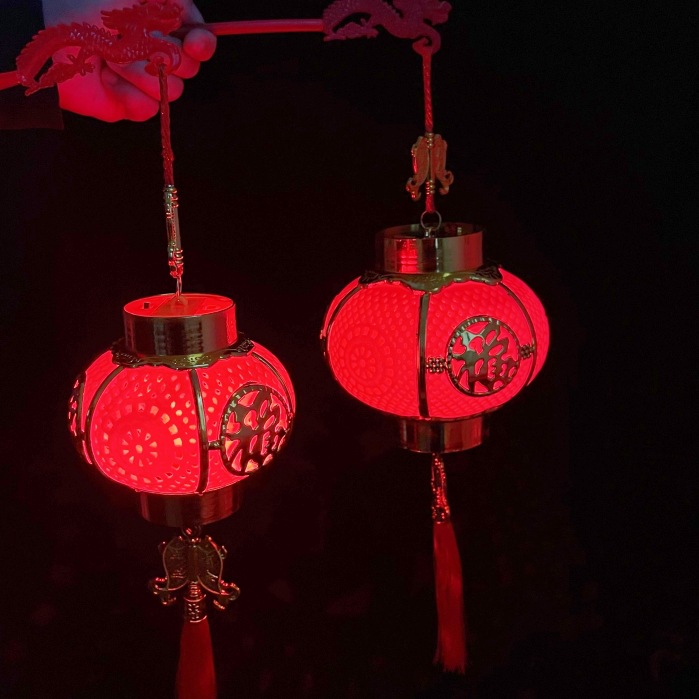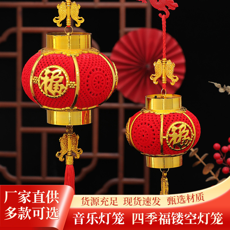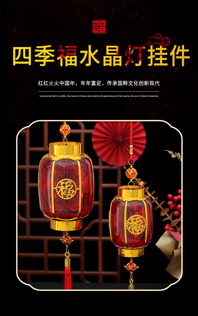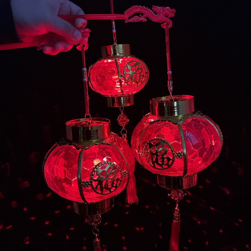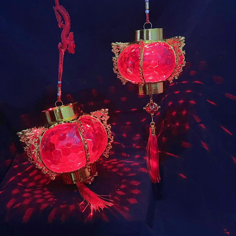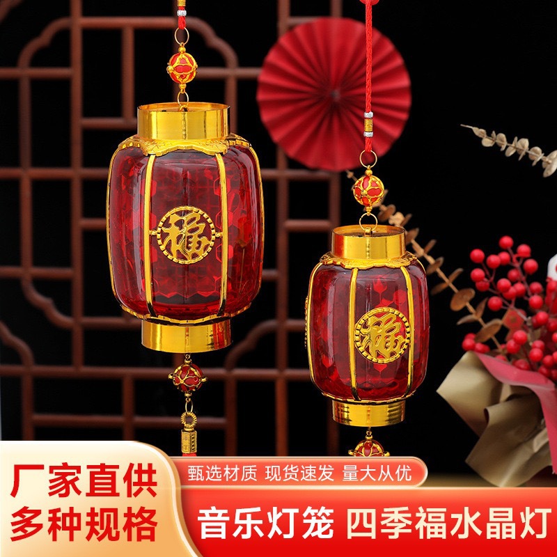 新年儿童手提灯笼投影水晶灯笼发光福字大红宫灯春节过年装饰批发