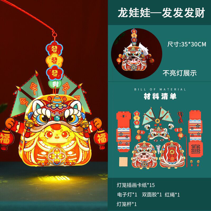 国潮diy手工灯笼过年儿童手提花灯全套材料包古风龙年灯笼批发