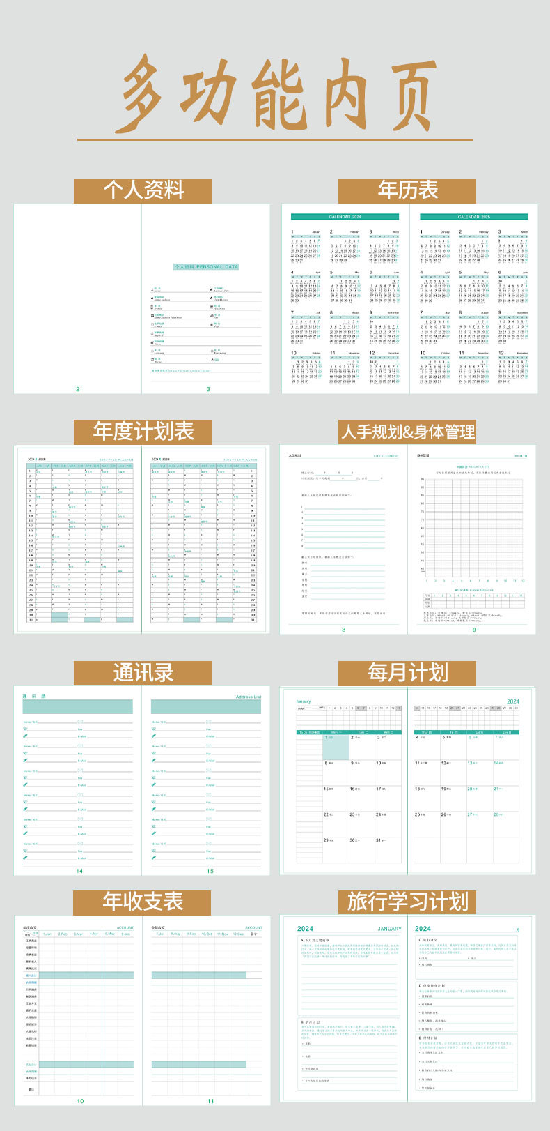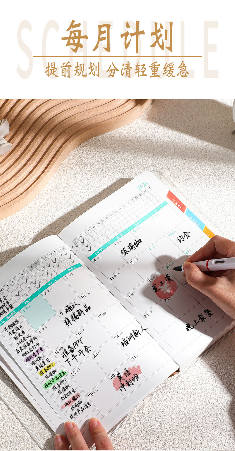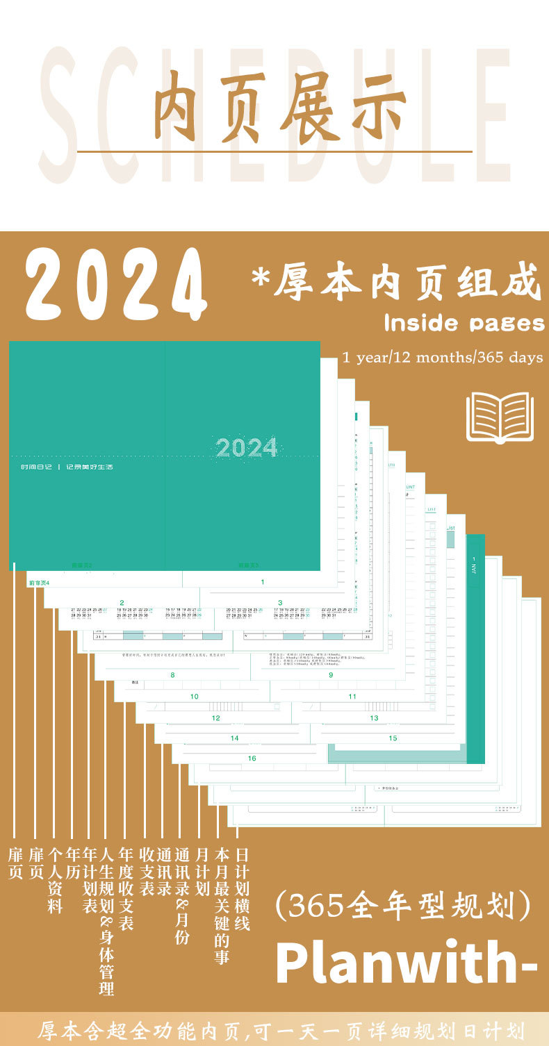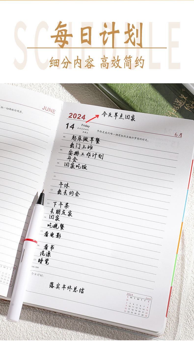新款2024年历本日程本一天一页计划本加厚打卡笔记本杜邦纸本子