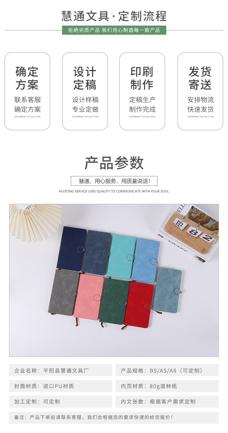 现货简约软皮笔记本圆扣办公会议记事本学生日记本商务礼品本厂家