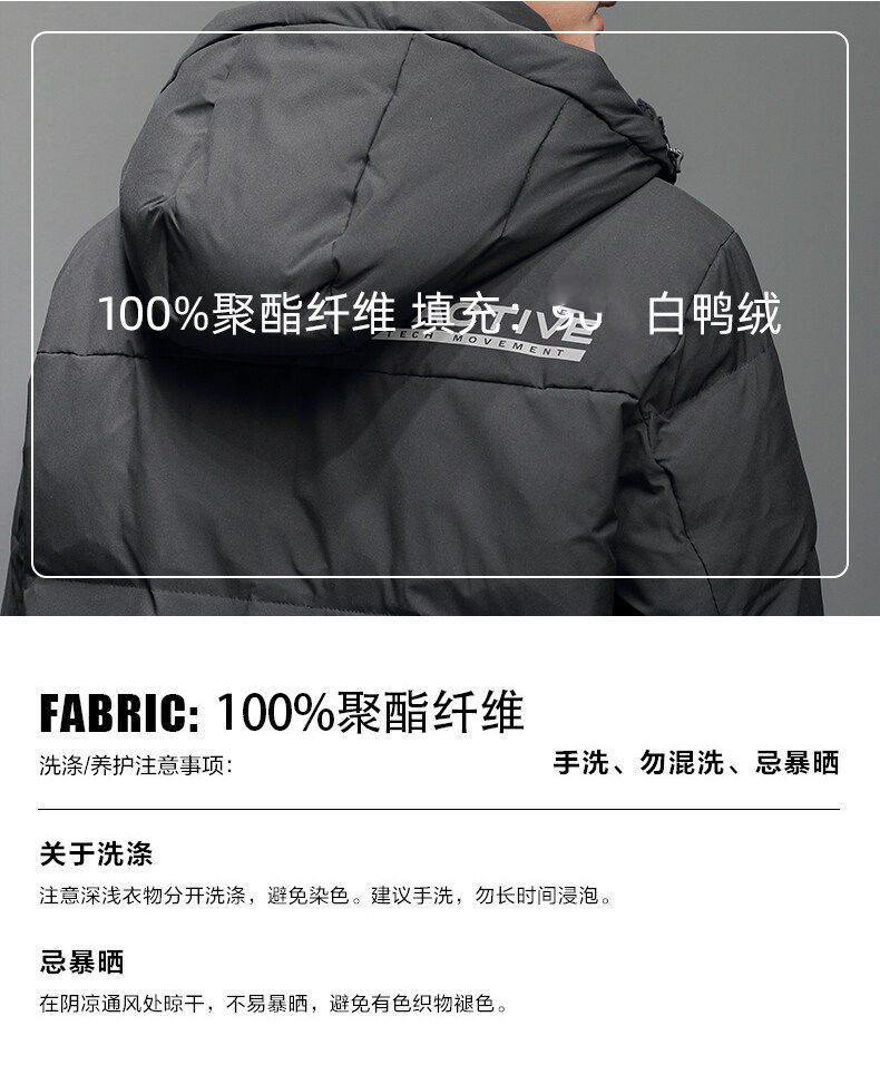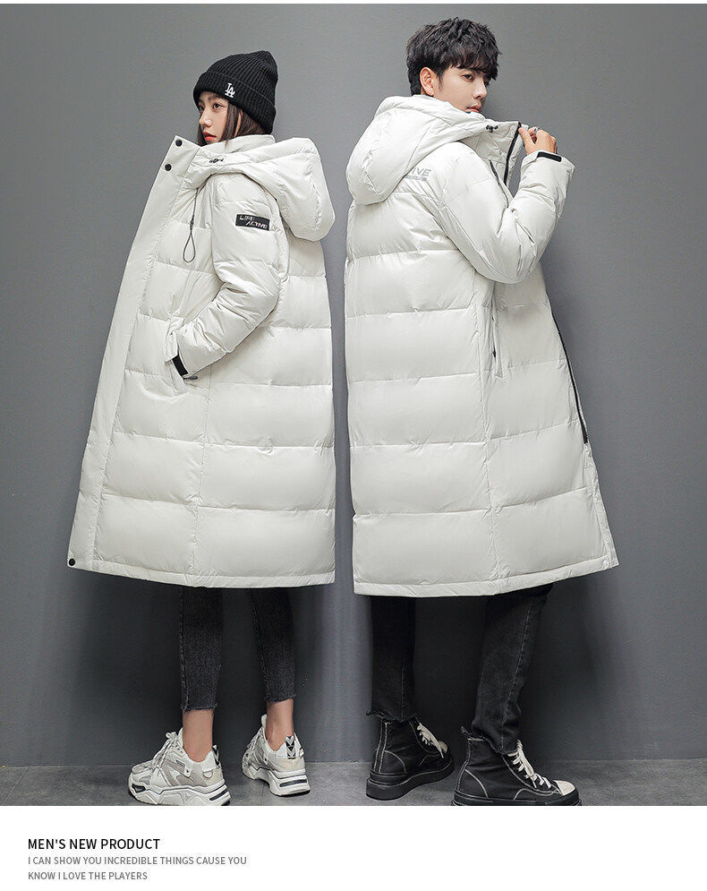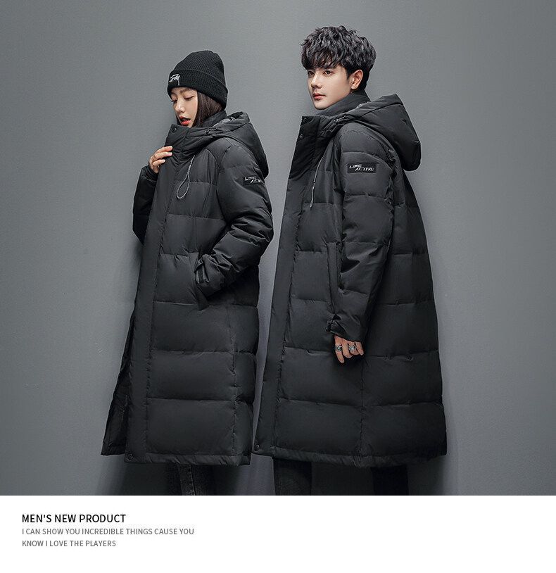 2023年纯色中长款羽绒服情侣加厚时尚保暖防寒连帽青年冬装外套潮