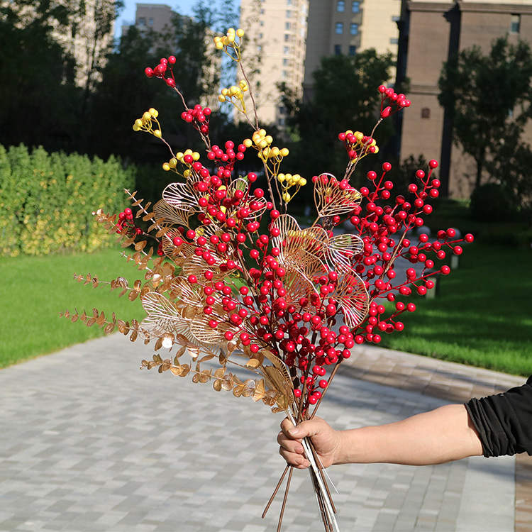 仿真花摆件 仿真浆果红果 家居装饰 梧桐果发财果 北美冬青果批发