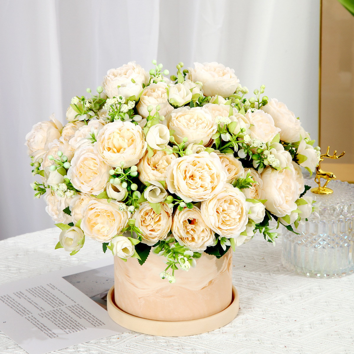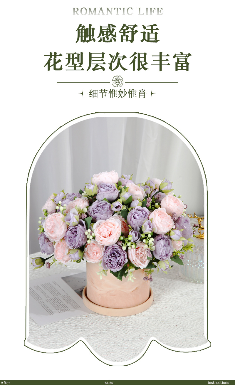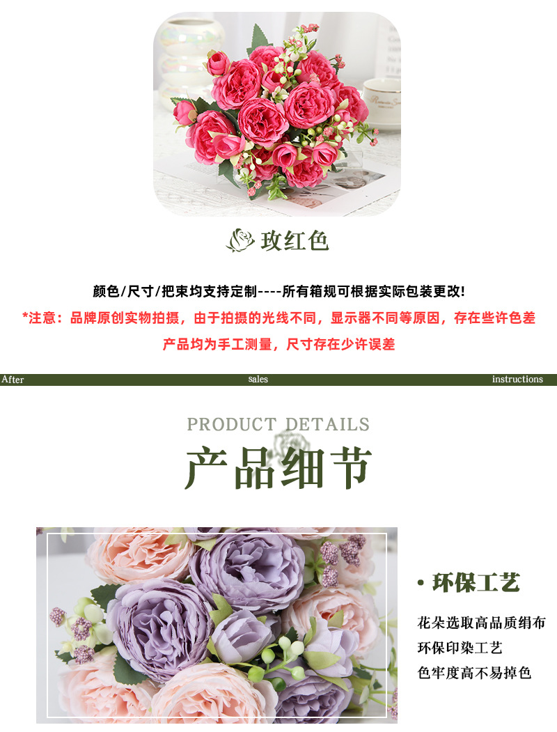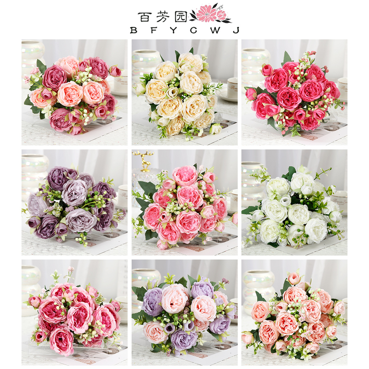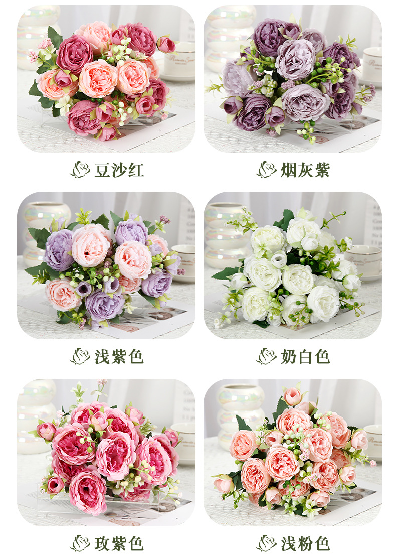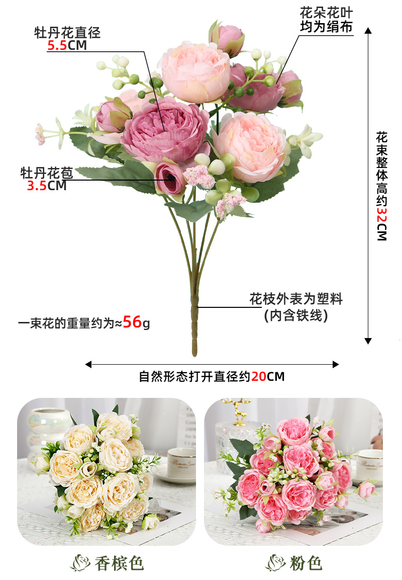 绢花舒加尔洋牡丹仿真花婚庆布置手工花客厅摆件玫瑰仿真花材假花