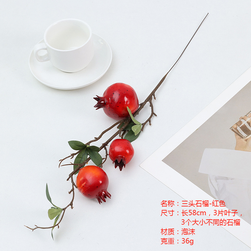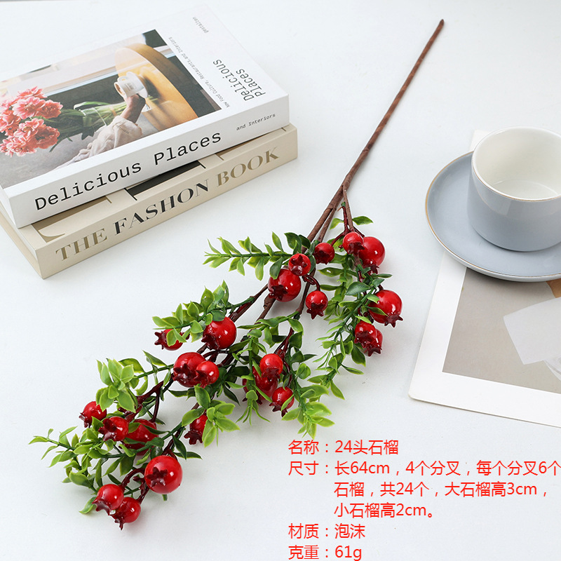 仿真果子多头石榴新中式室内装饰泡沫果新年果子假花树枝仿真浆果