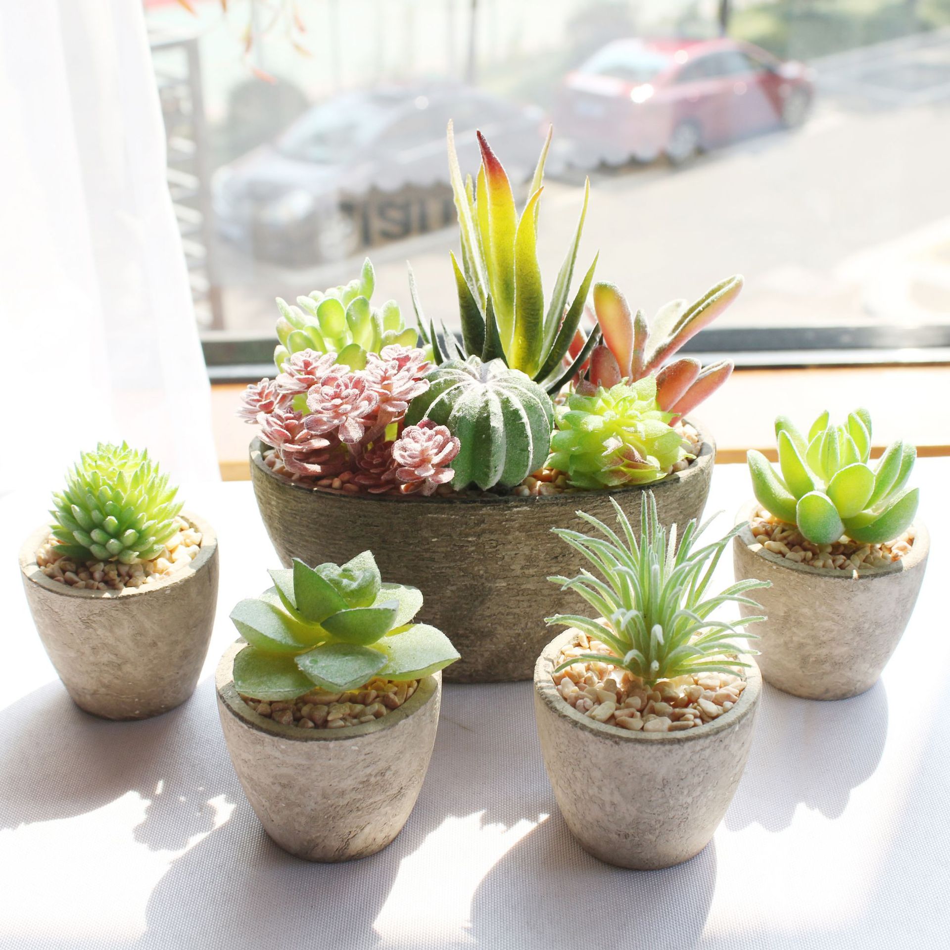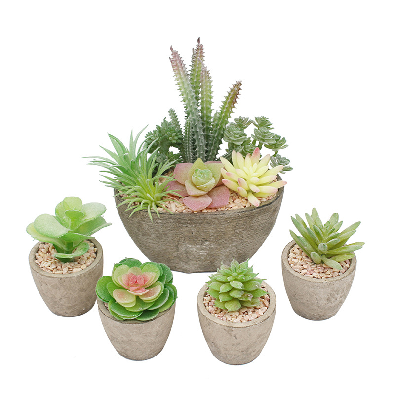 亚马逊热销仿真多肉盆栽仿真花假多肉盆景组合纸浆盆家居装饰摆件