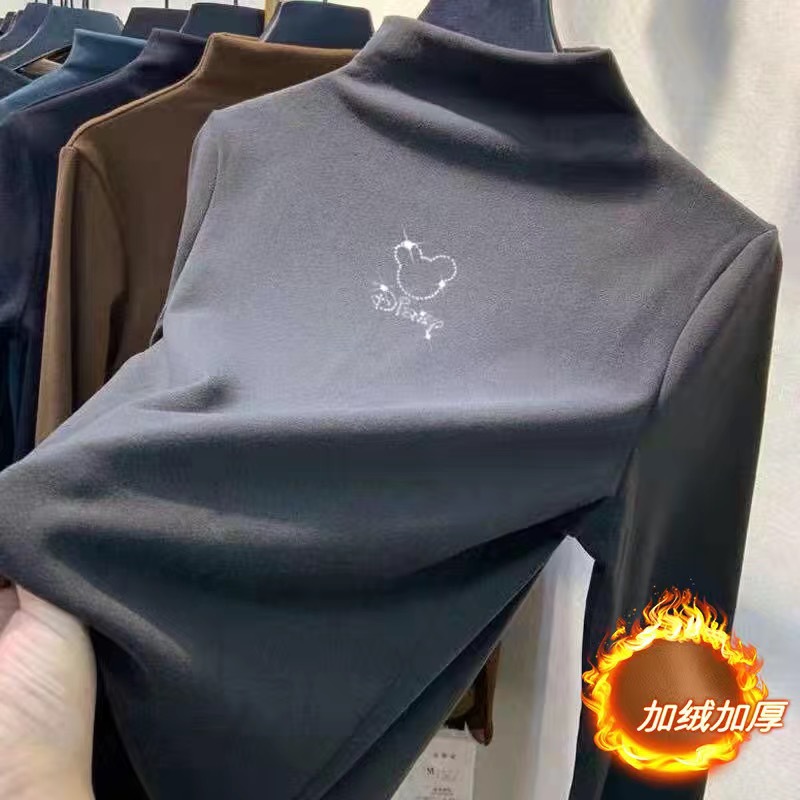 女童打底衫新款秋冬加厚一体绒中大童长袖加绒加厚半高领洋气上衣