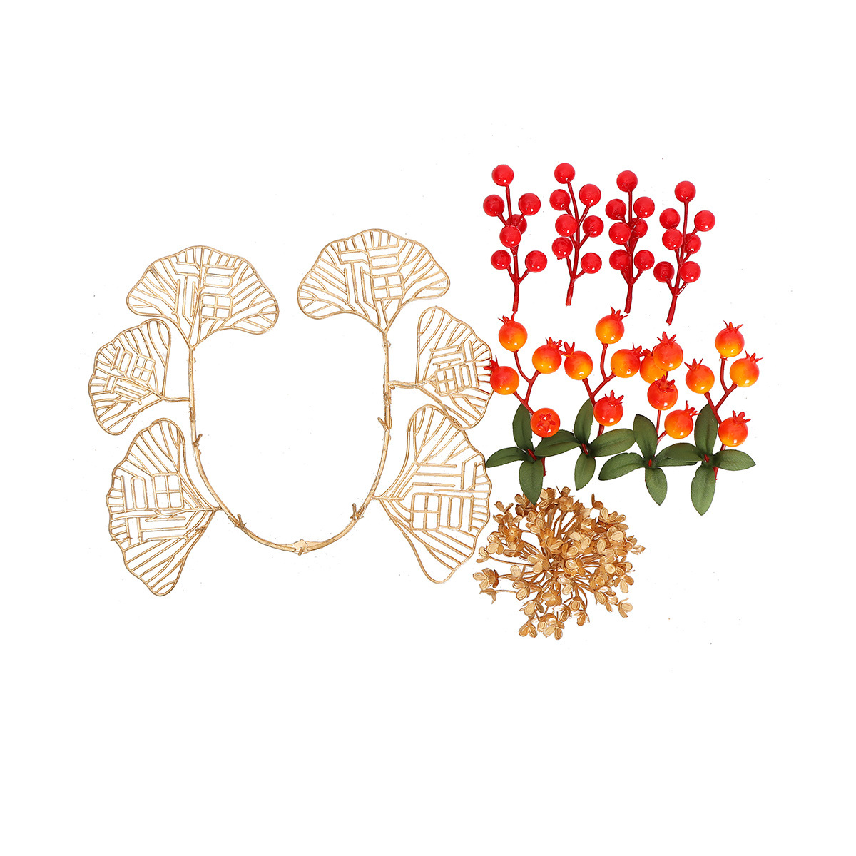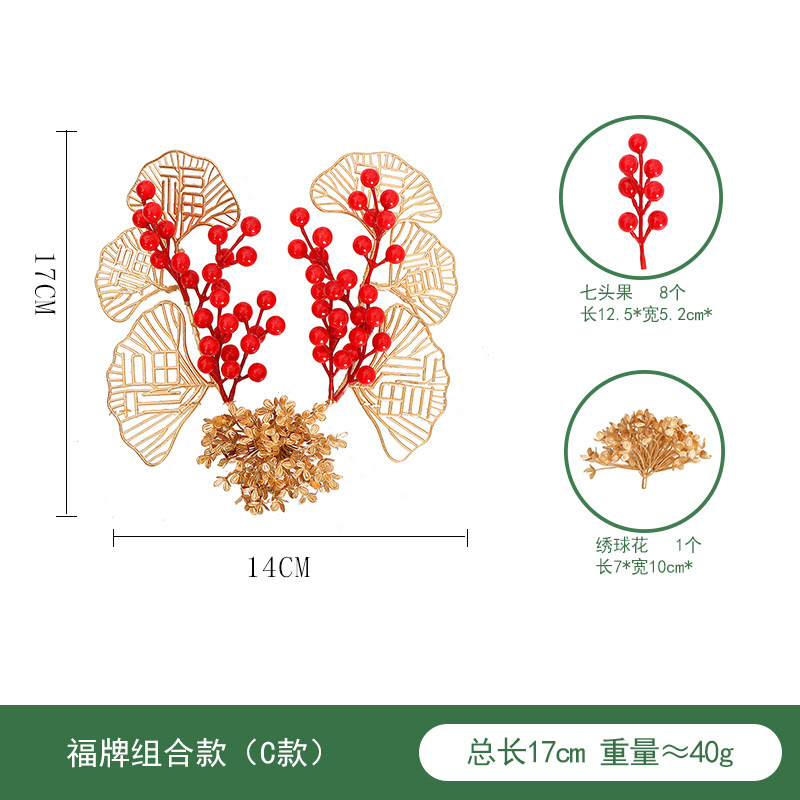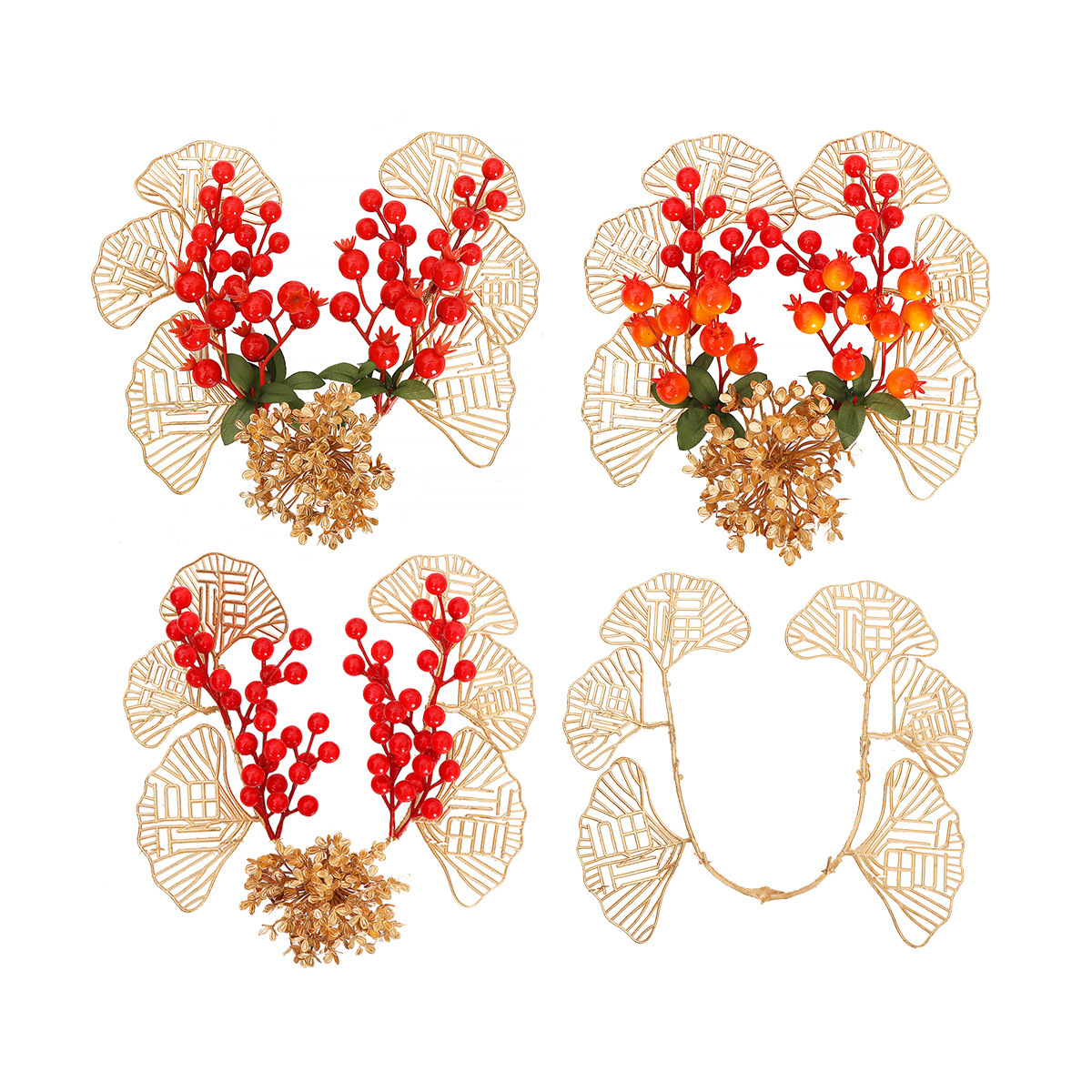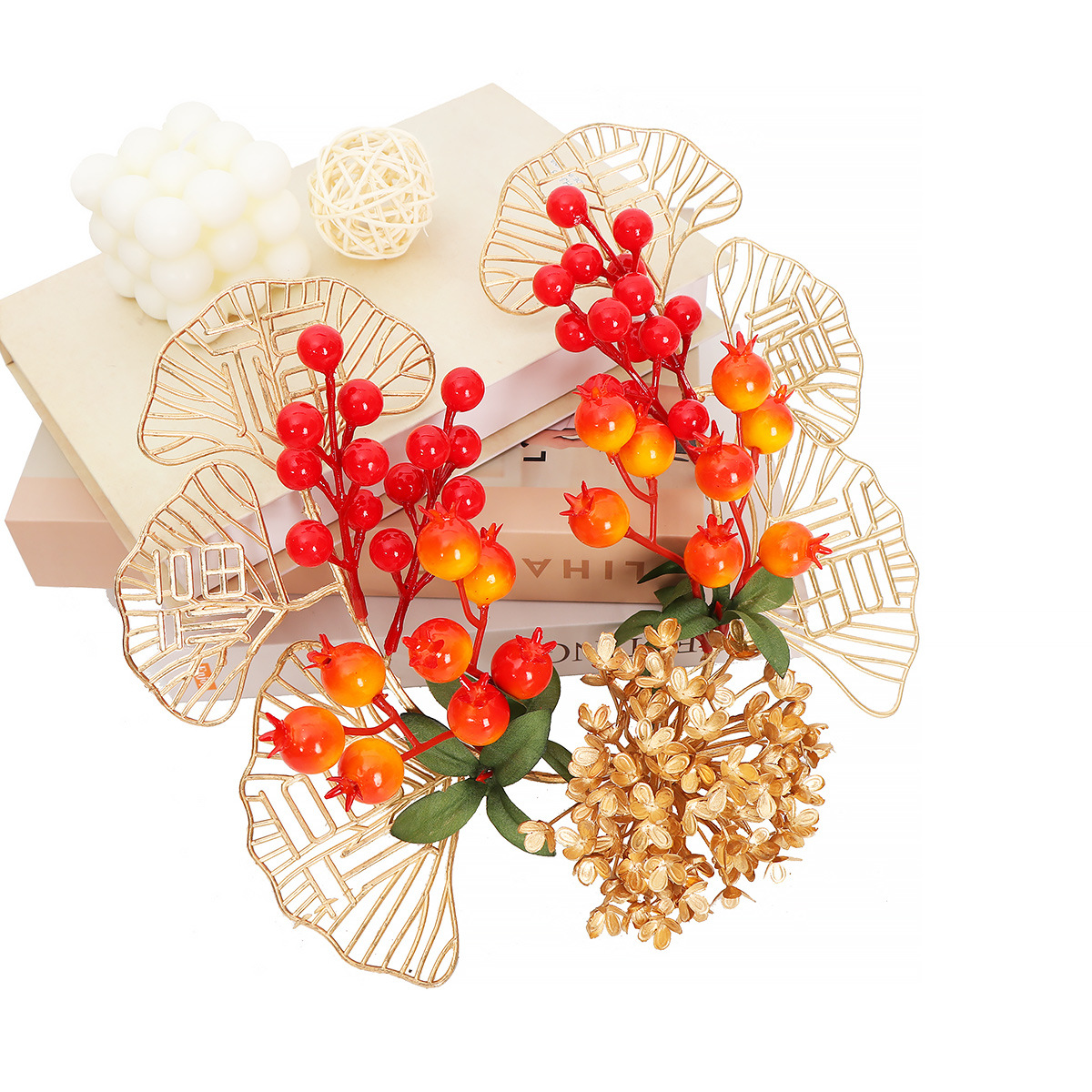 金色系仿真花配材金色塑料花金色叶子福牌银杏叶新年福桶插花材料