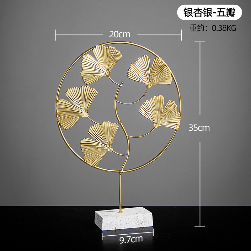 批发欧式轻奢风创意金属工艺品银杏叶家居装饰客厅桌面电视柜摆件