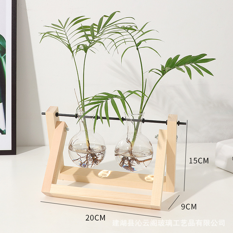创意木架水培植物玻璃花瓶 ins绿萝玻璃瓶小容器家居装饰桌面摆件