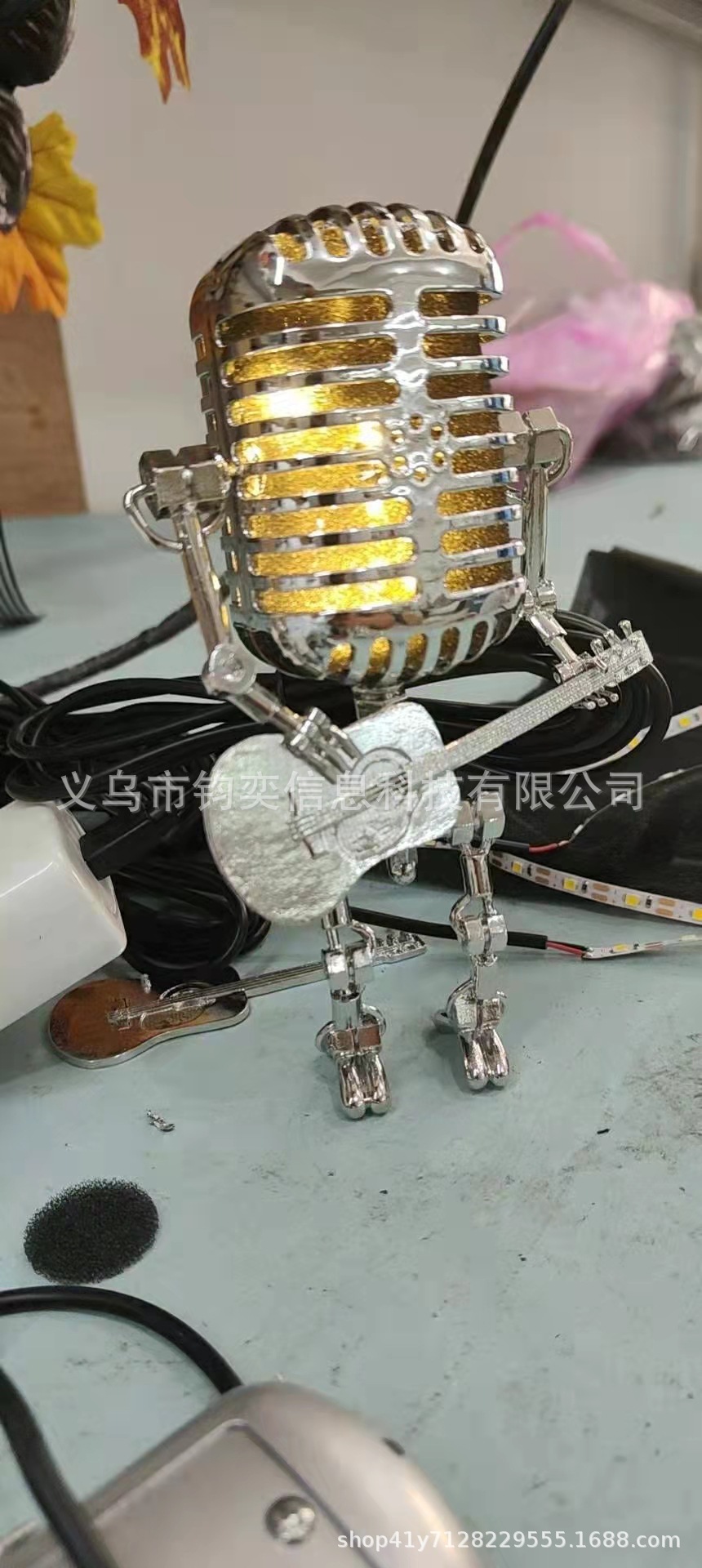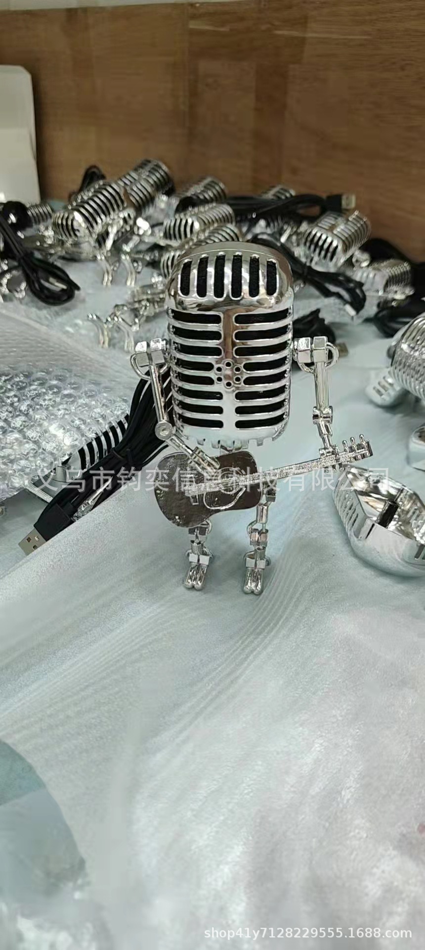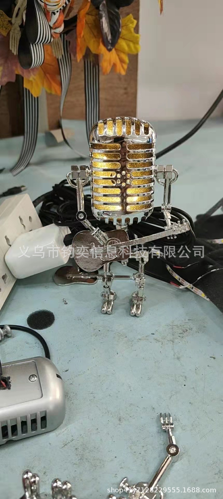 跨境Yagood复古麦克风机器人雕塑金属麦克风吉他