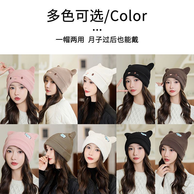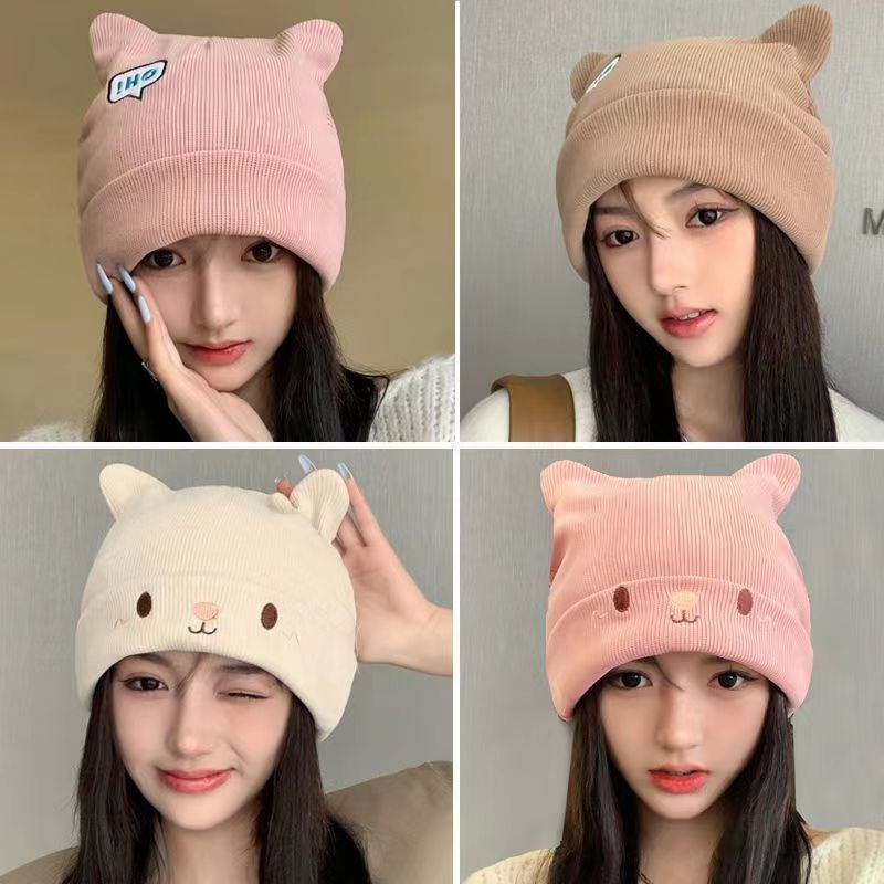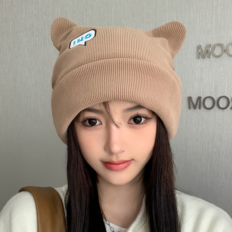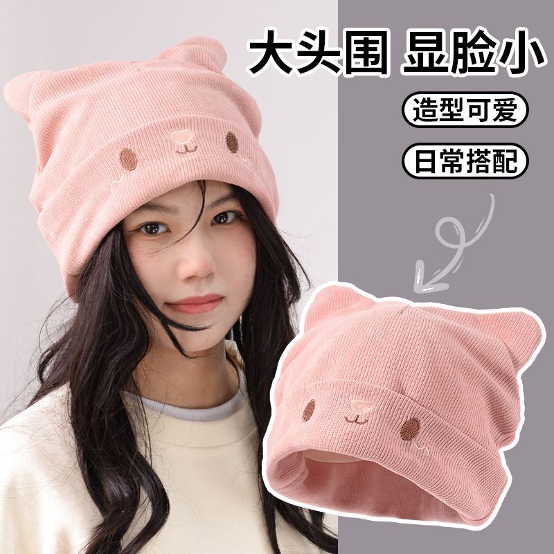 针织毛线帽子女网红堆堆帽秋冬保暖时尚百搭保暖韩版包头冷帽显脸