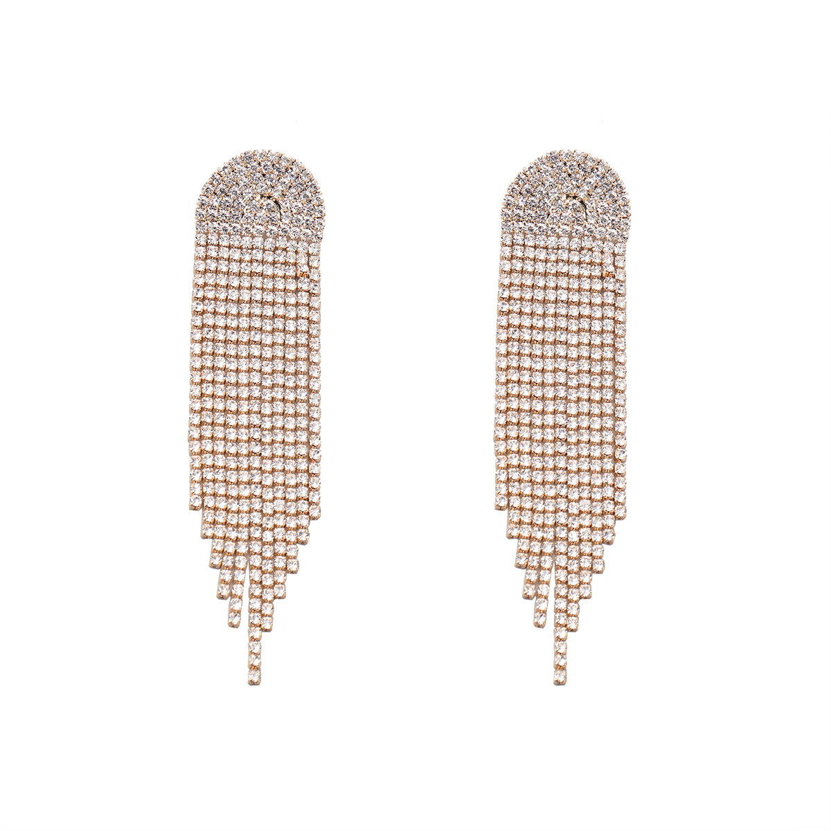 超闪爪链系列几何形合金镶钻水钻长款流苏耳环女欧美夸张宴会耳饰