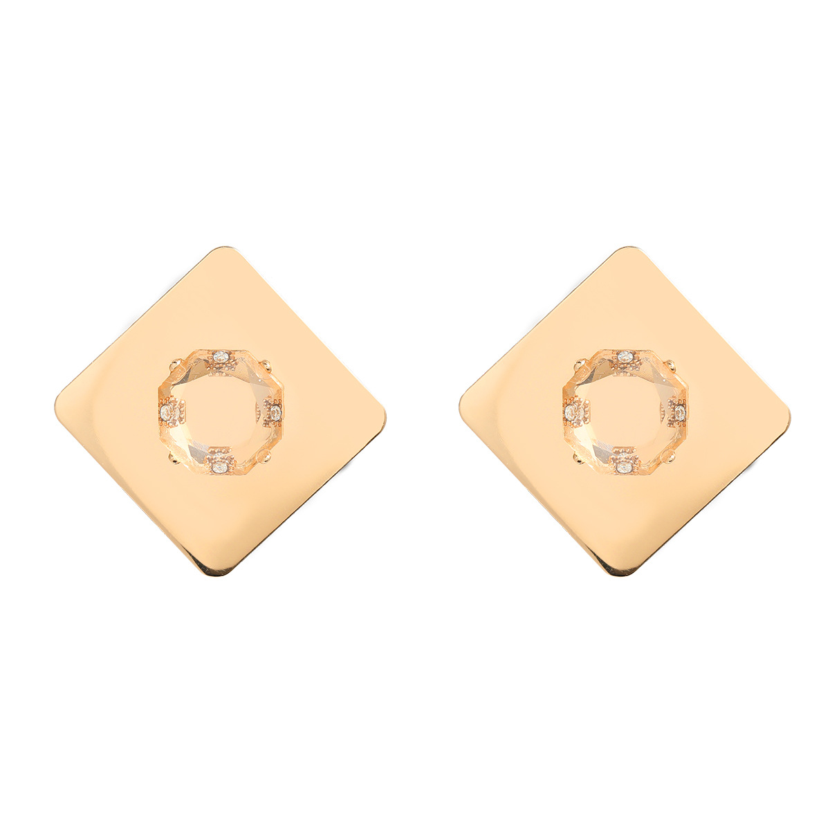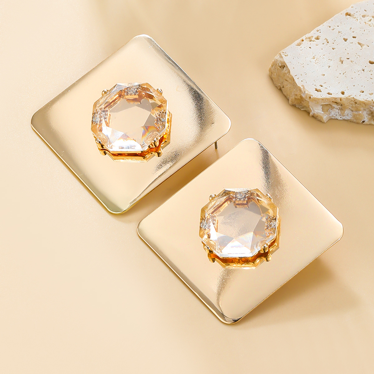 秋冬新款合金耳环欧美耳饰女方形亮面金属耳钉夸张派对饰品外贸款