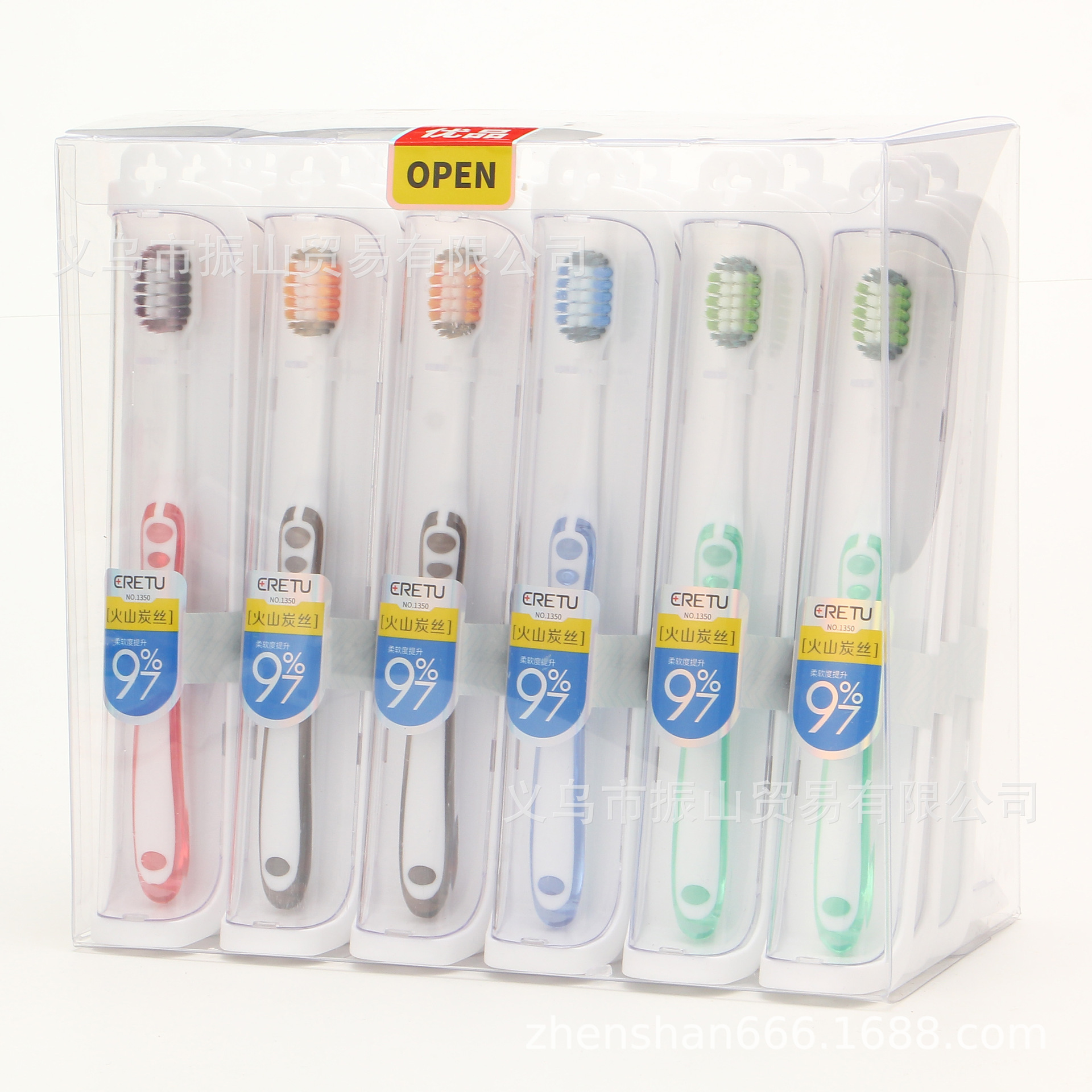 佳洁玉1350 旅行防尘塑盒装弹力透明刷柄火山炭软毛牙刷