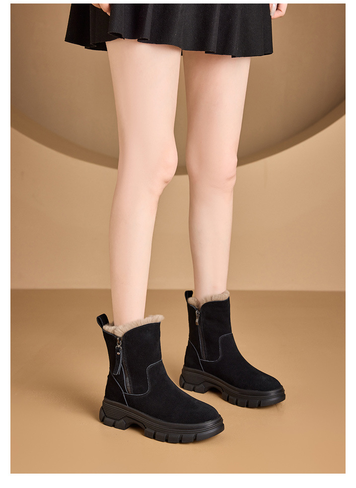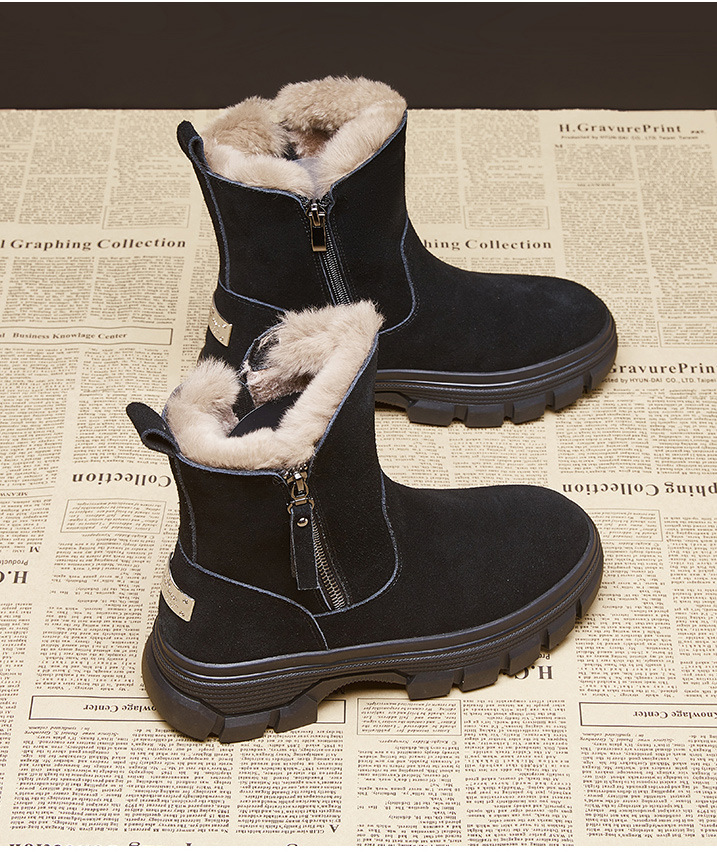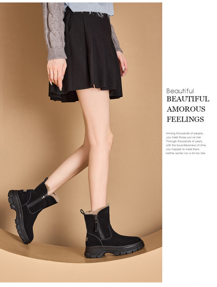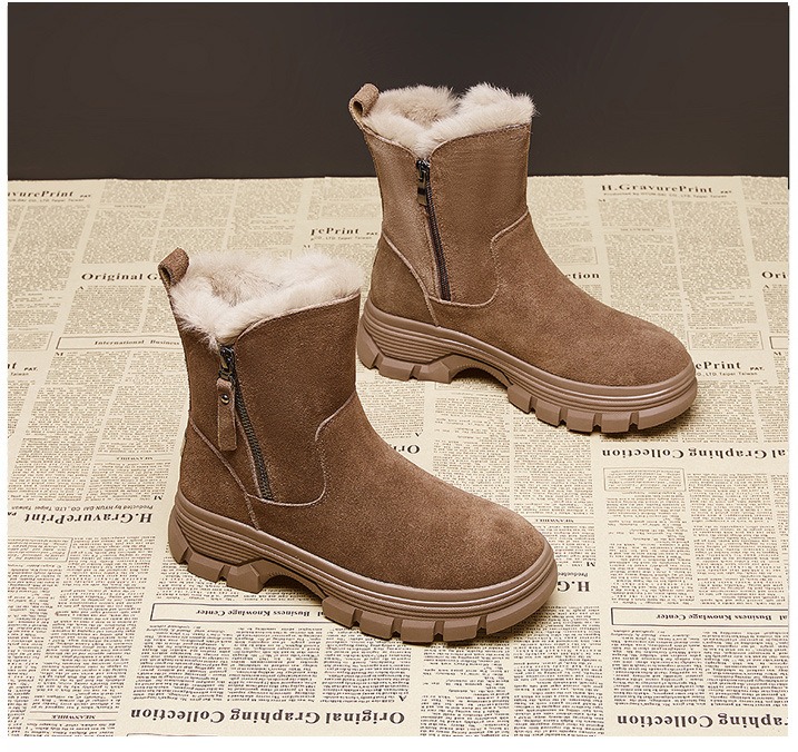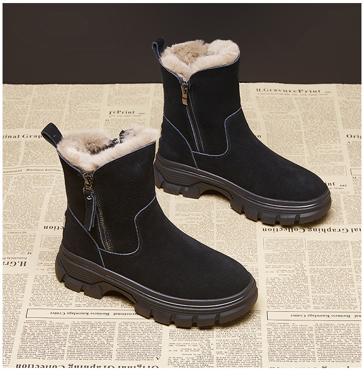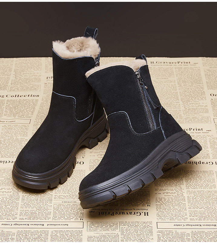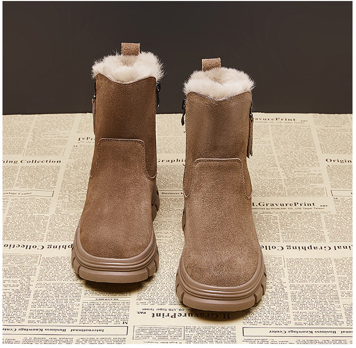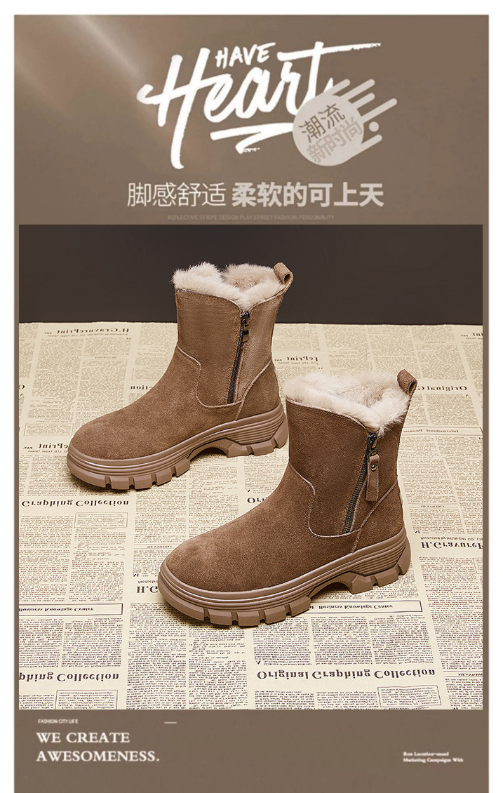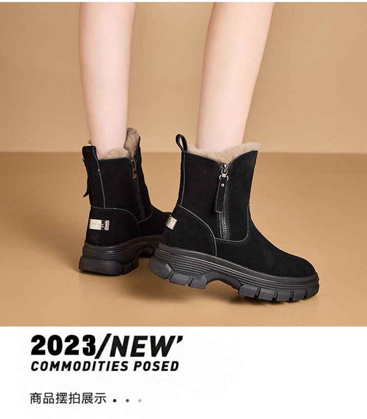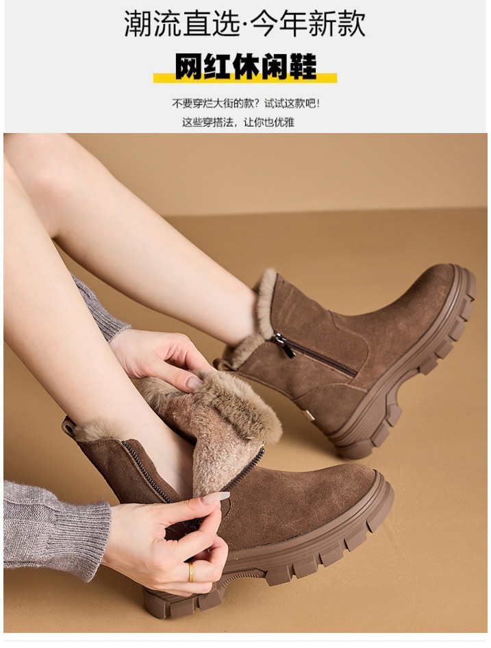 雪地靴女2023新款冬季厚棉保暖短靴休闲加绒户外棉靴真皮高帮女鞋