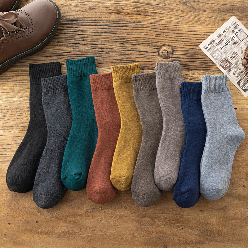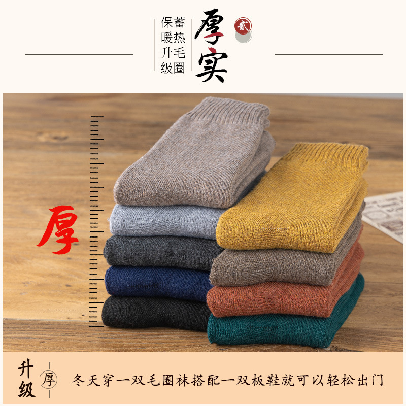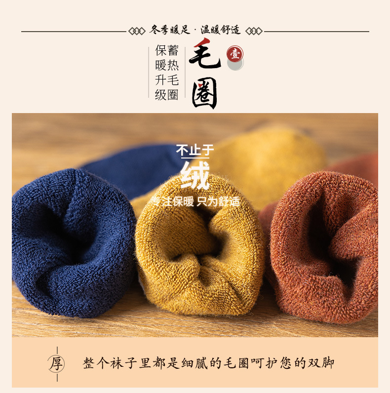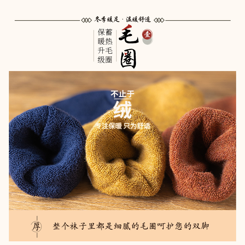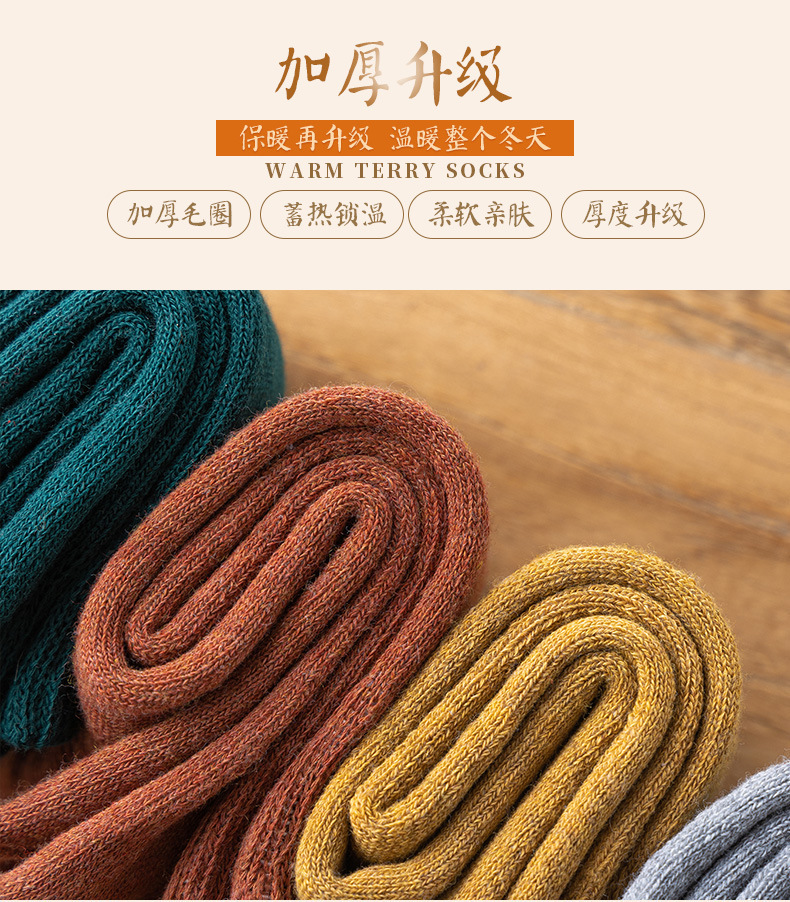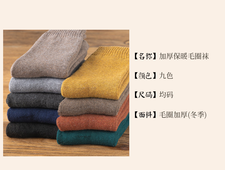 加绒加厚保暖毛圈袜秋冬新款纯色中筒吸汗透气男女同款百搭毛巾袜