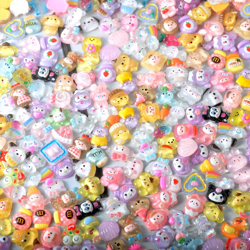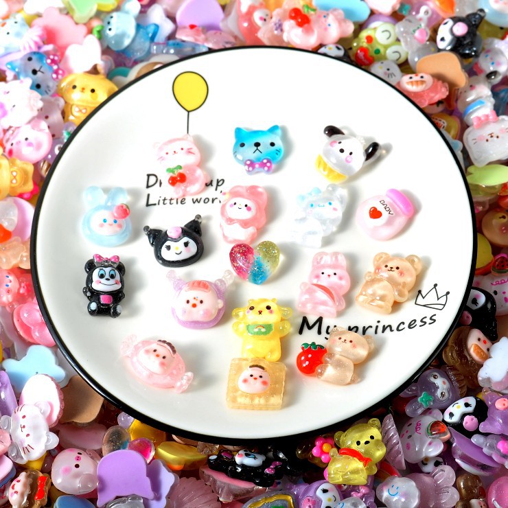 爆款冰透卡通奶油胶树脂配件厂批发混装3d水杯贴发卡手机壳diy配