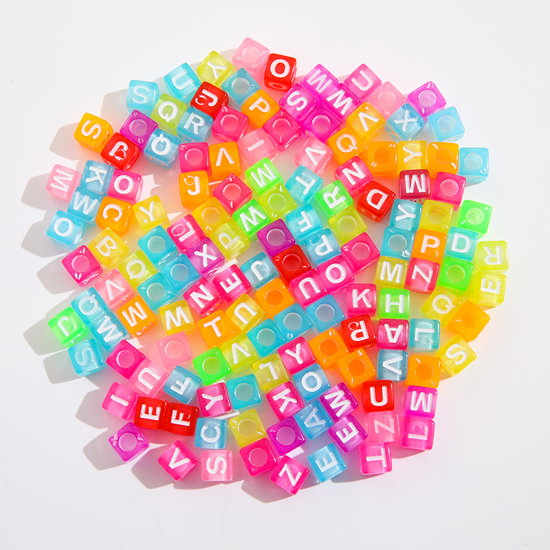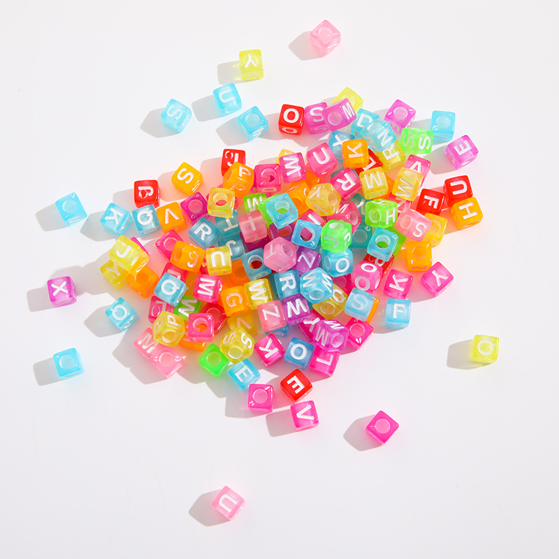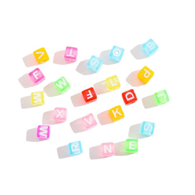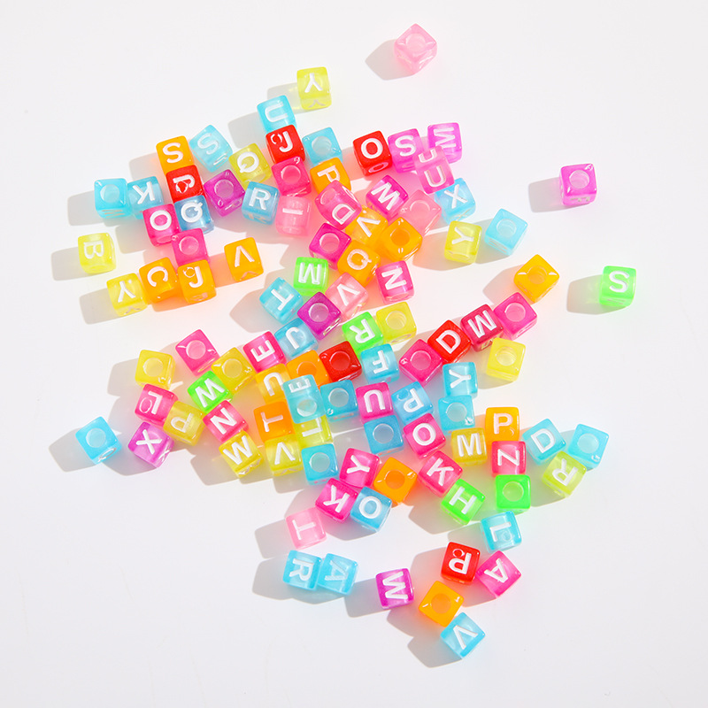 亚克力正方形字母珠 透明水洗彩色字母 diy英文字母手工套装配件