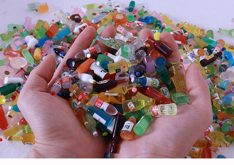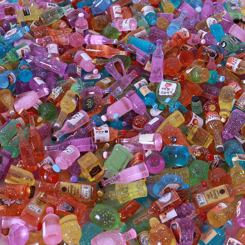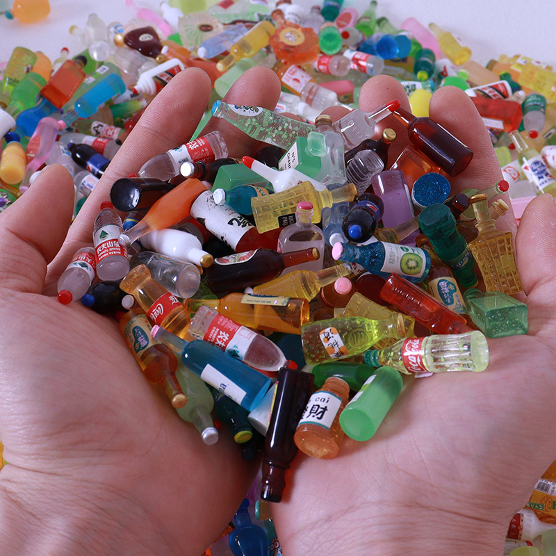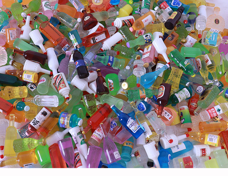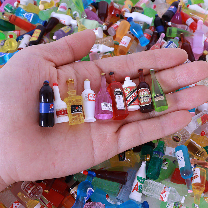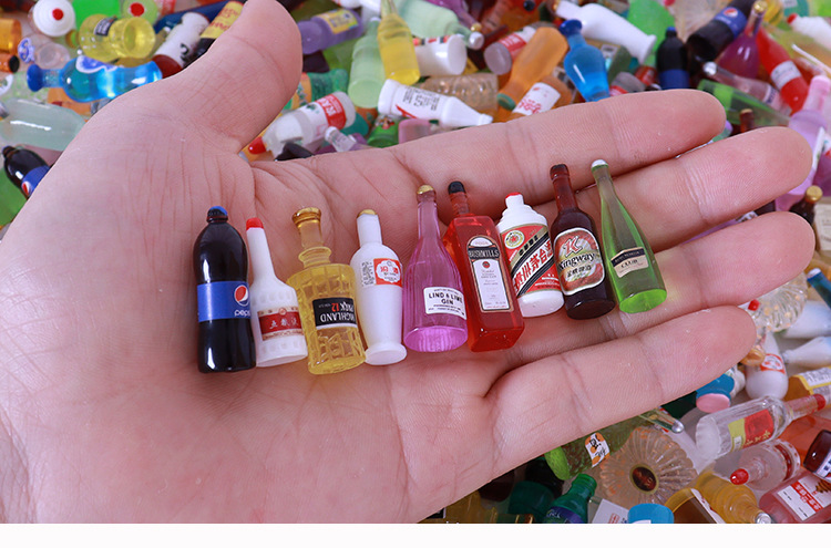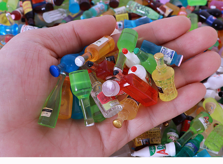 混款微缩食玩迷你细闪仿真饮料瓶子diy小酒瓶树脂配件饰品便利店
