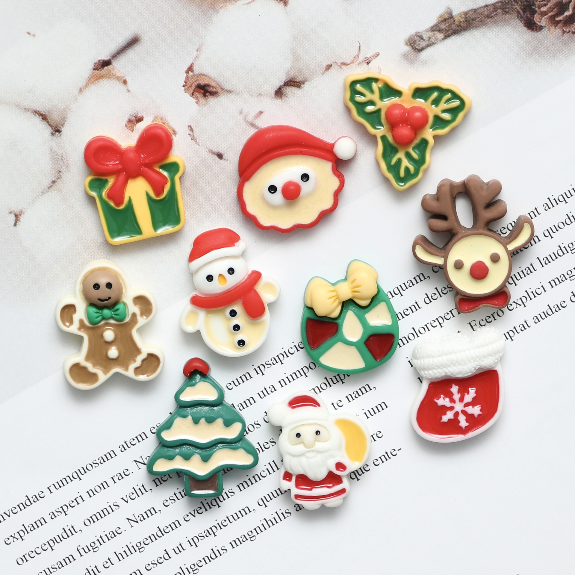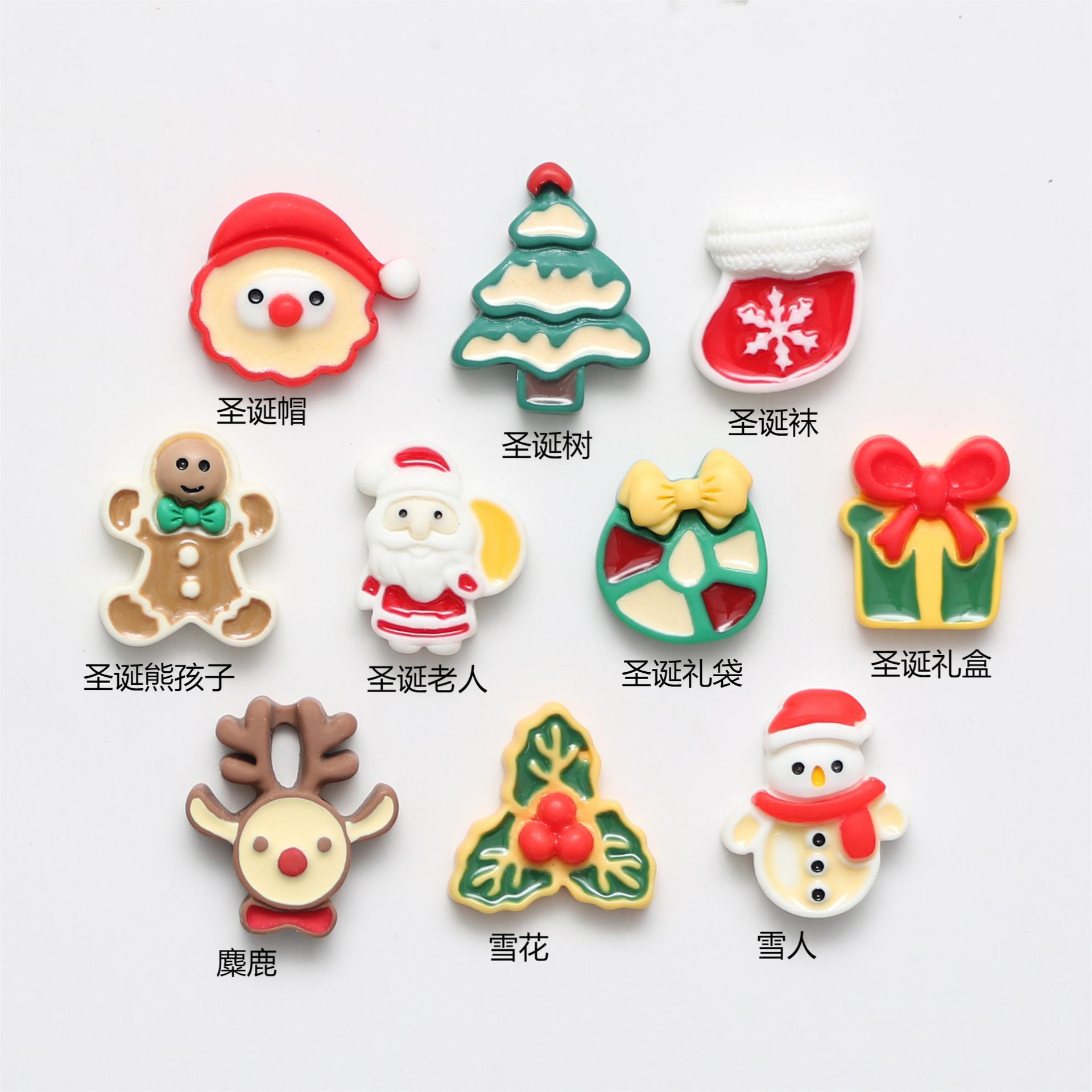 亮油圣诞节饰品配件圣诞树麋鹿diy奶油胶配饰发夹发饰胸针贴片