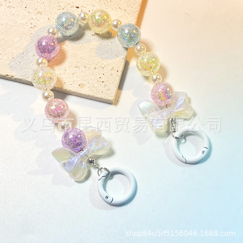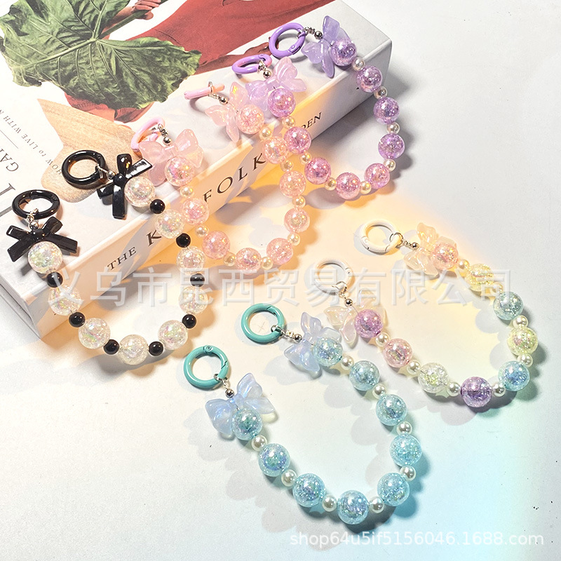 小香风夜光蝴蝶结链条手拎直播同款手机壳配件箱包挂饰钥匙扣批发