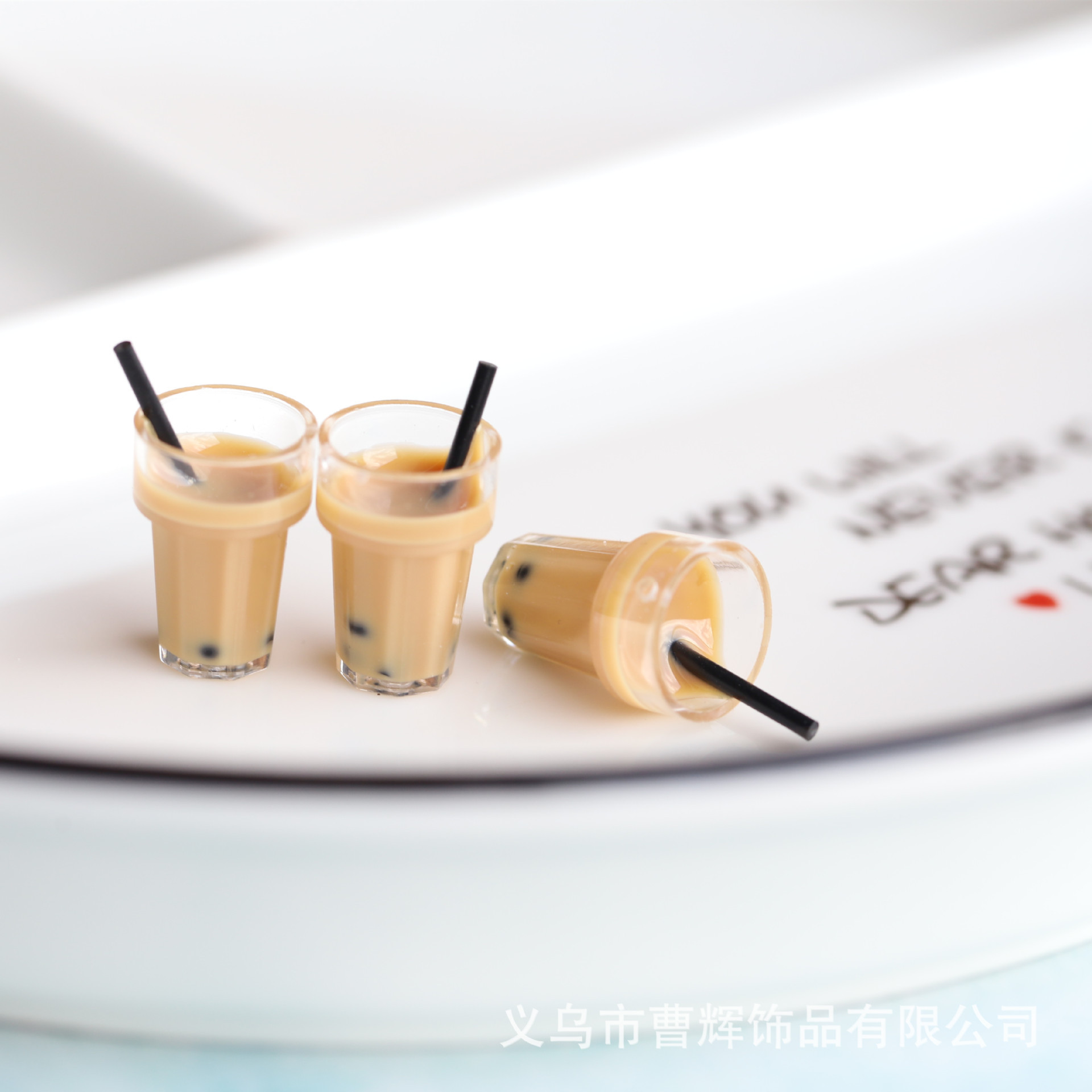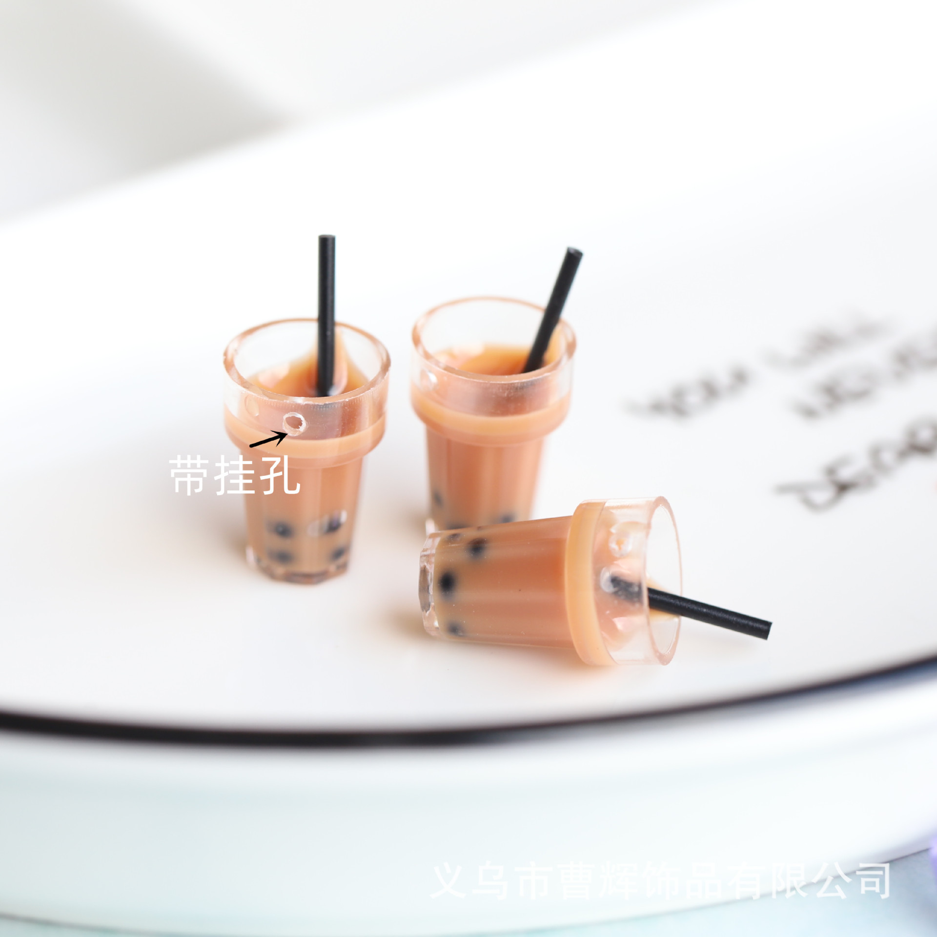 仿真珍珠奶茶吸管杯 创意diy手机链钥匙扣耳环饰品配件 带挂孔