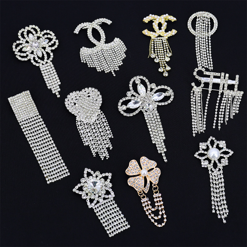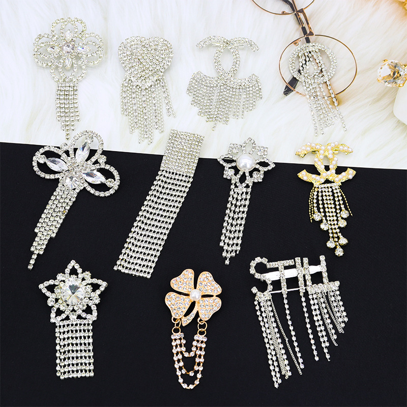 胸针流苏高档衣饰服装辅料水钻复古胸针防走光扣小香风别针配饰