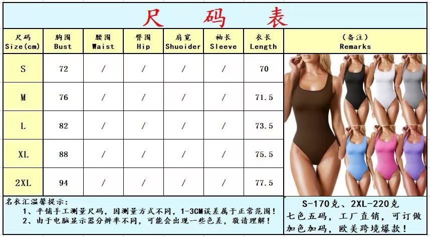 亚马逊欧美跨境热销爆款无缝螺纹背心收腰提臀塑身圆领连体衣收腹