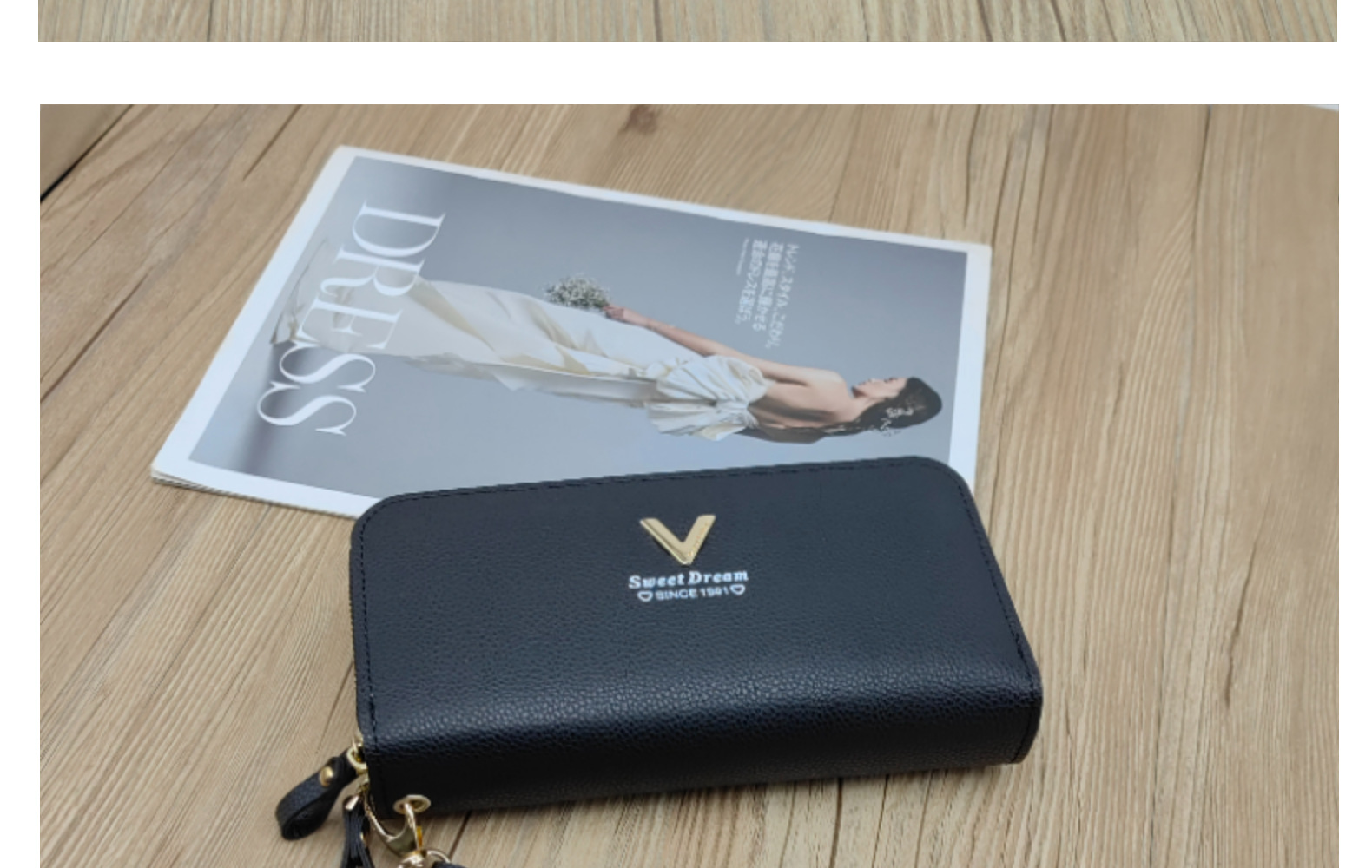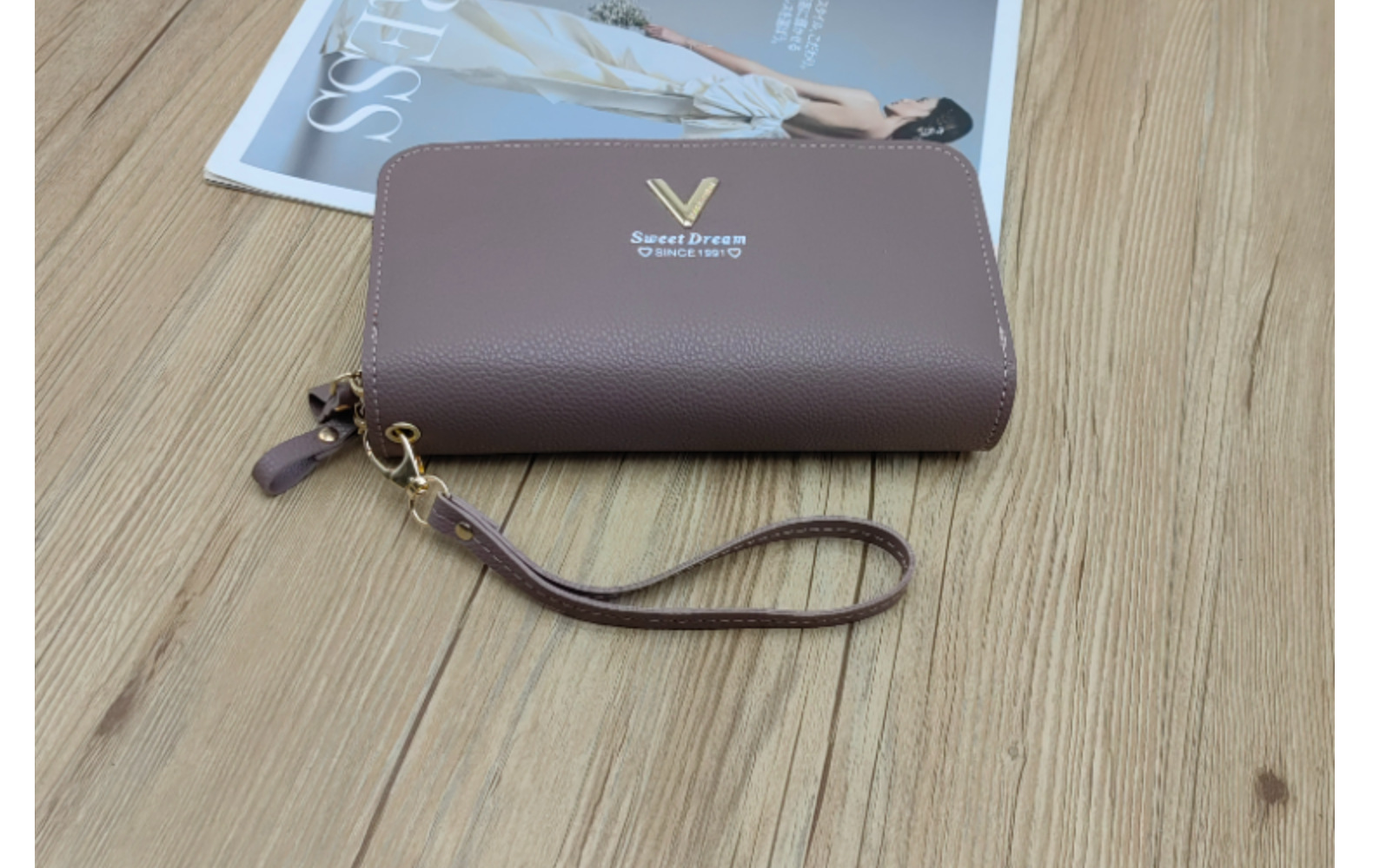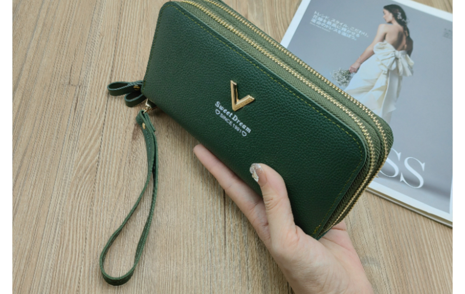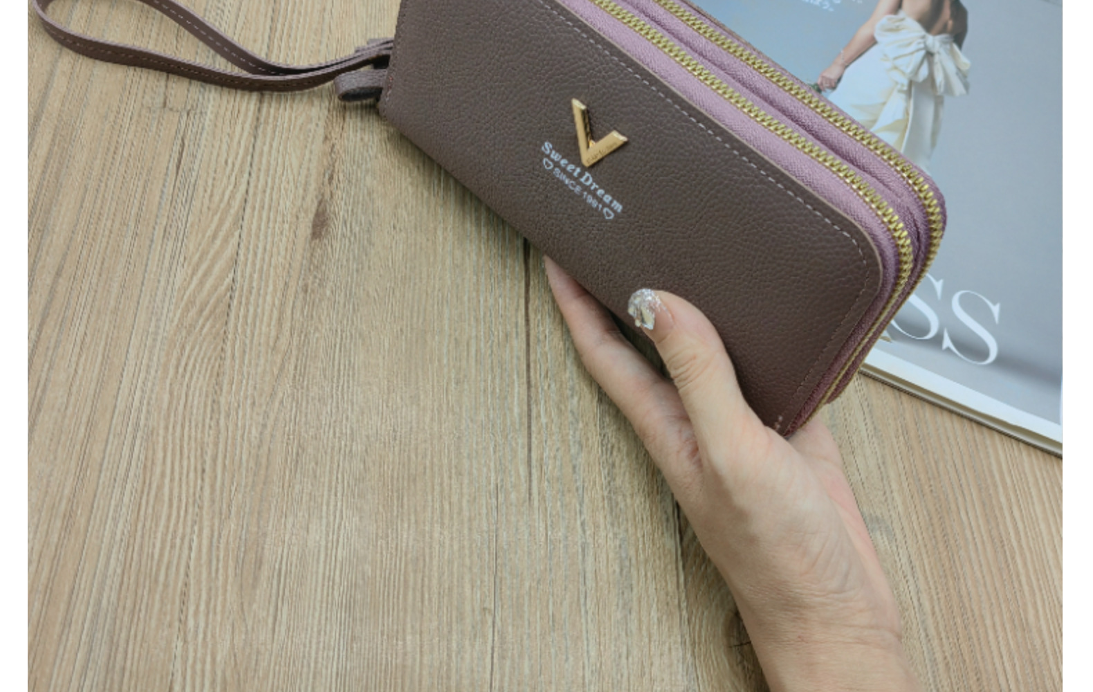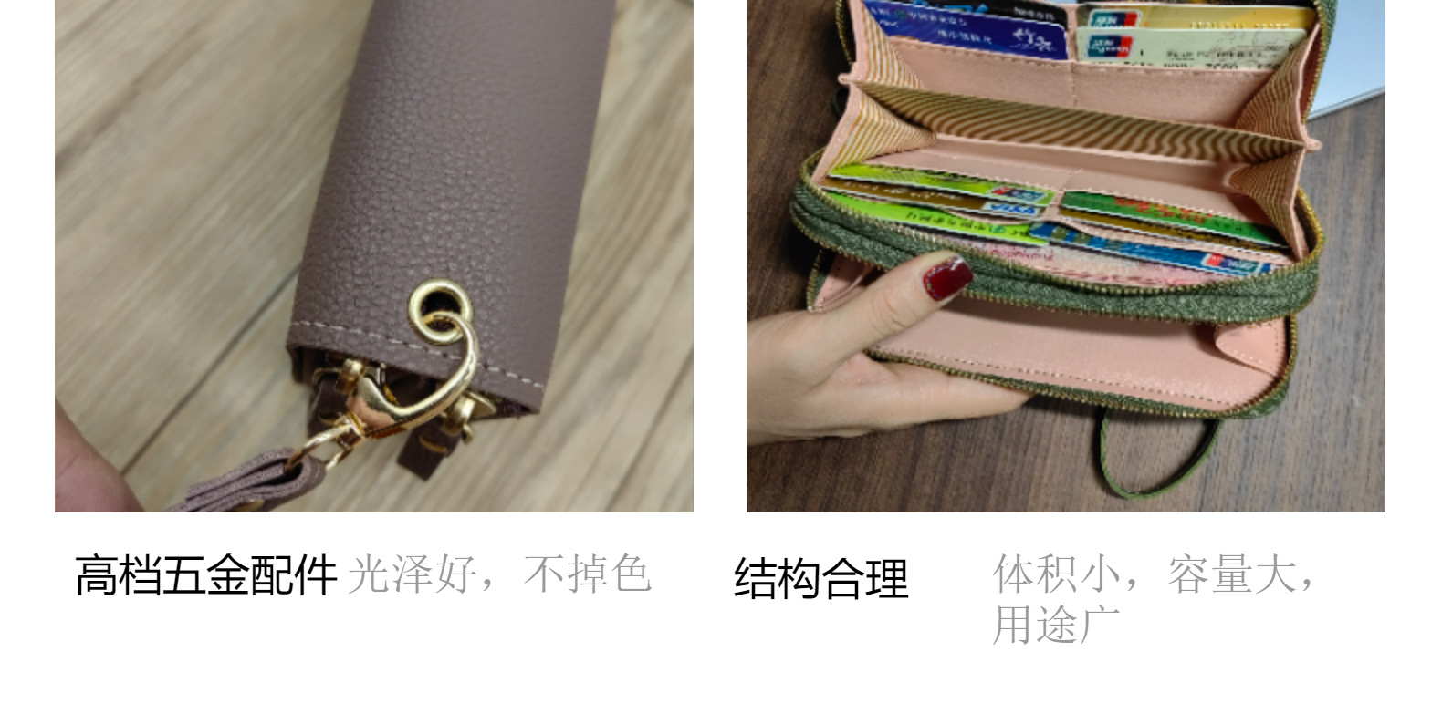 新款女士钱包时尚双层拉链长款手拿包荔枝纹手机包厚多卡位大容量
