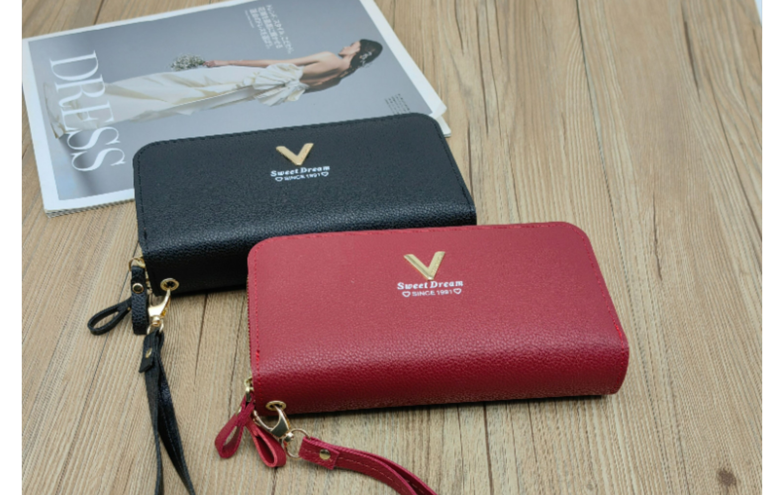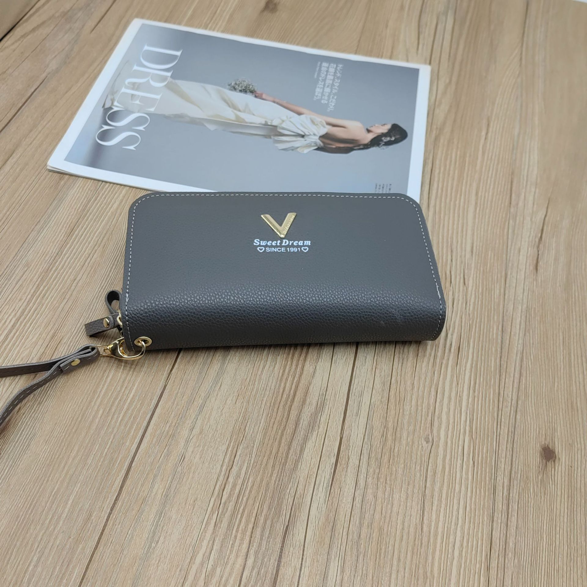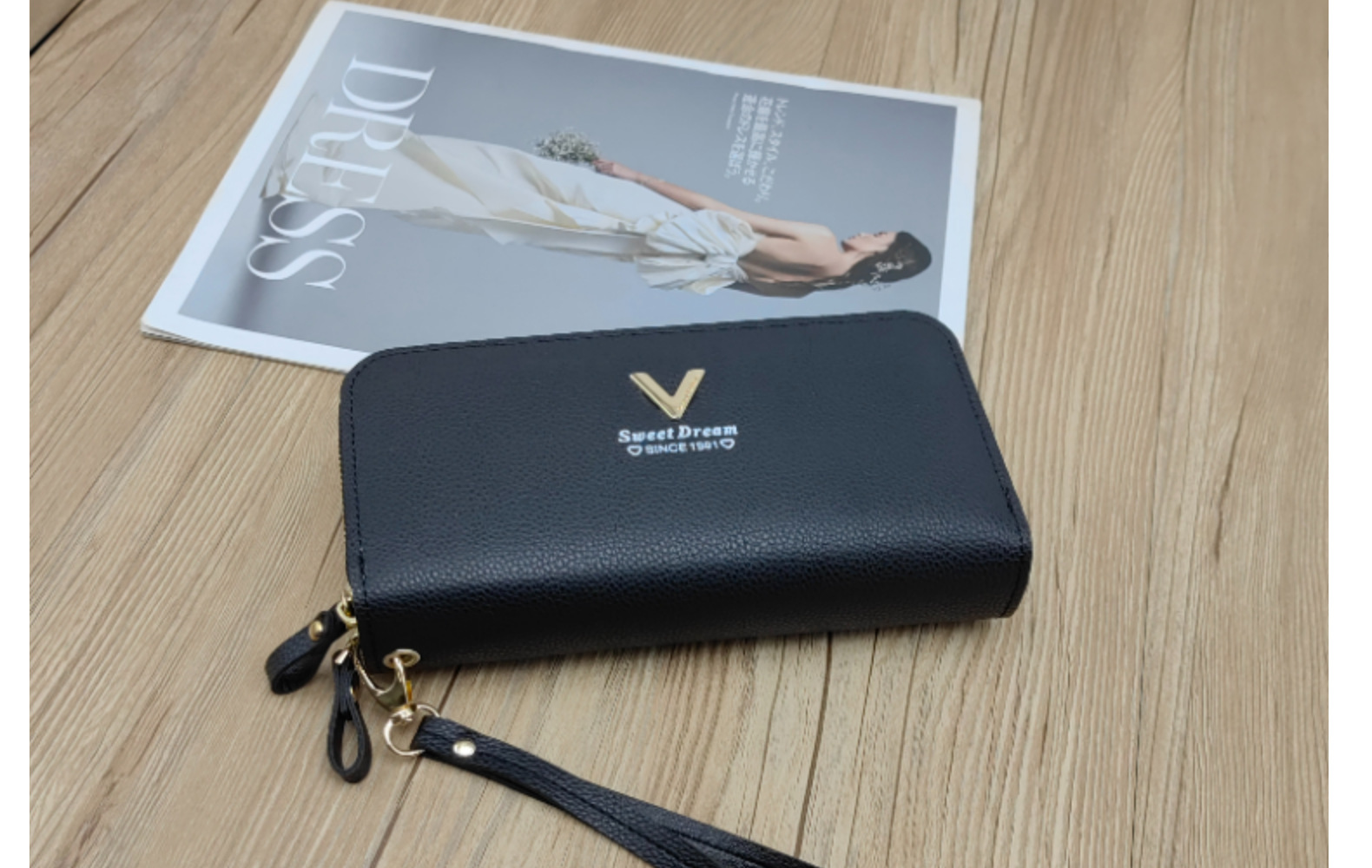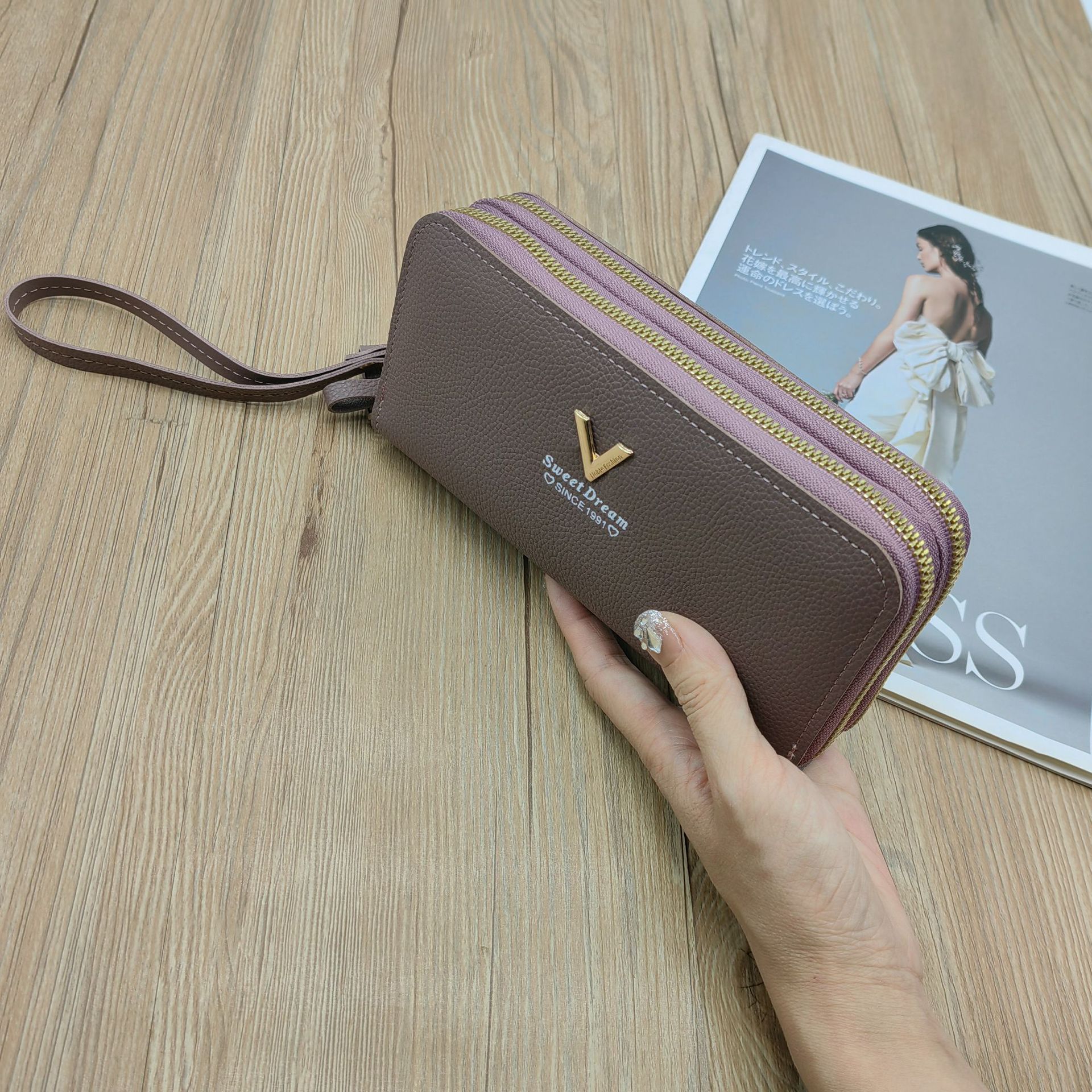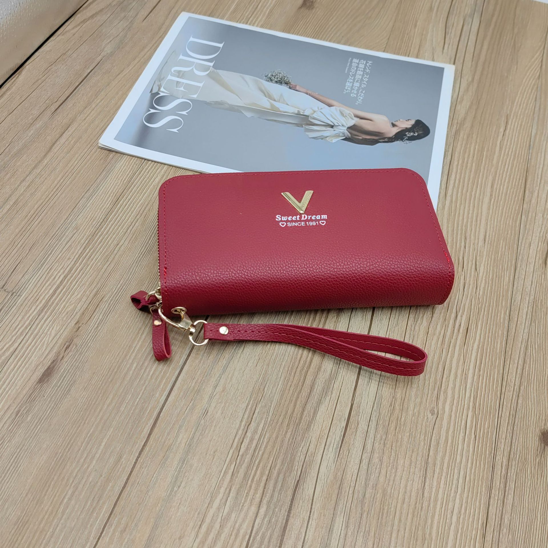 新款女士钱包时尚双层拉链长款手拿包荔枝纹手机包厚多卡位大容量