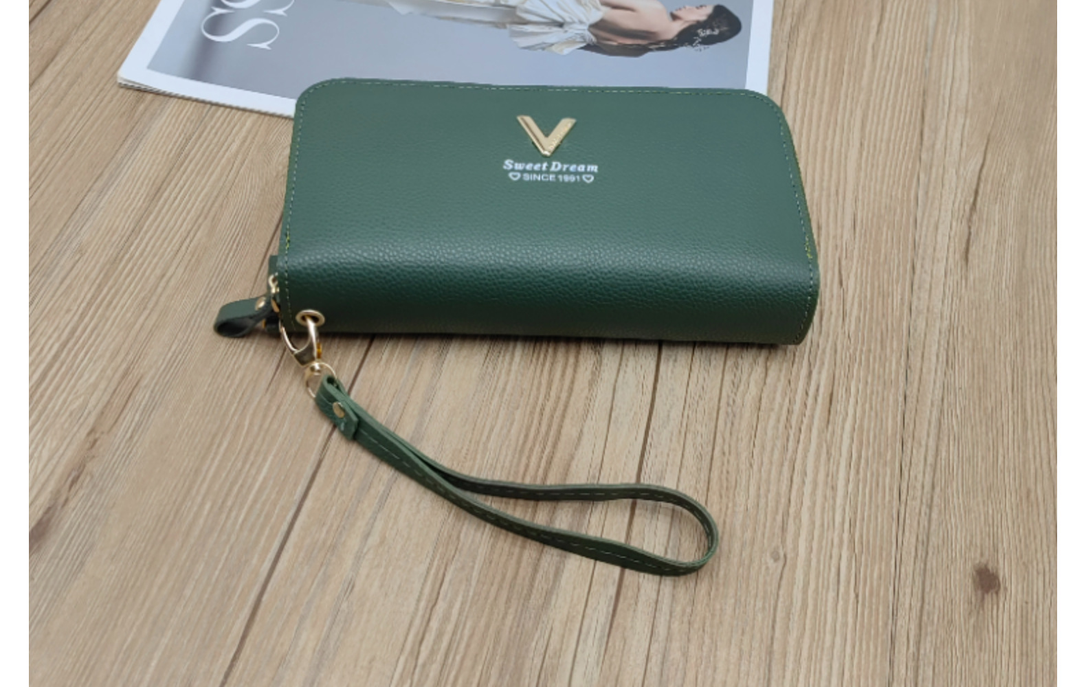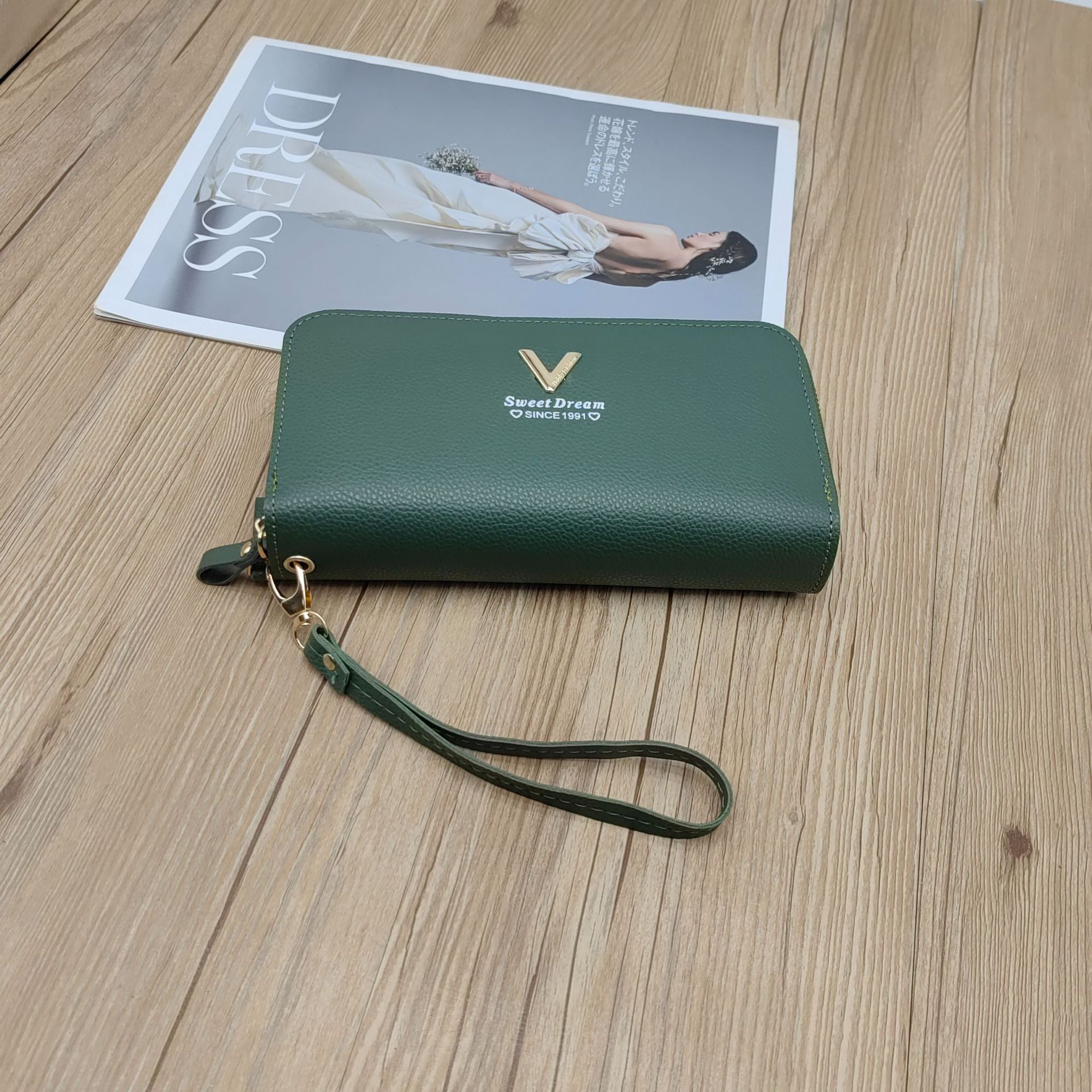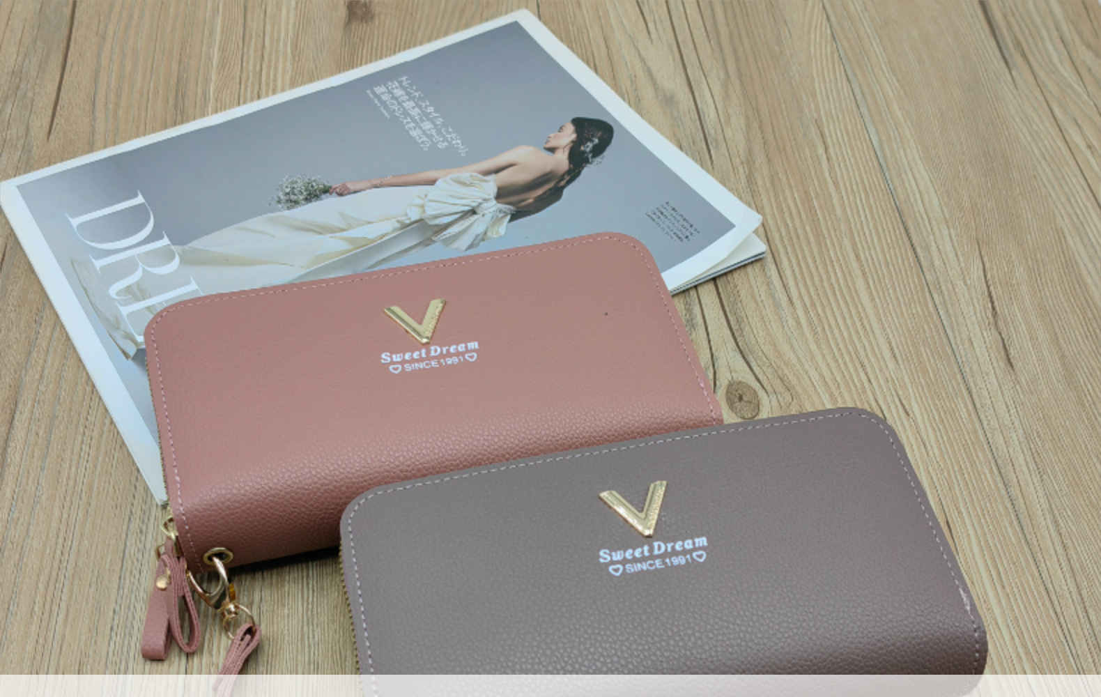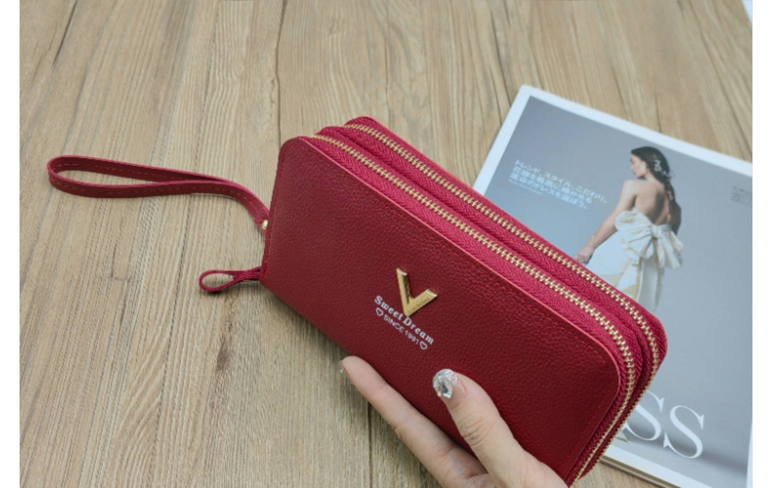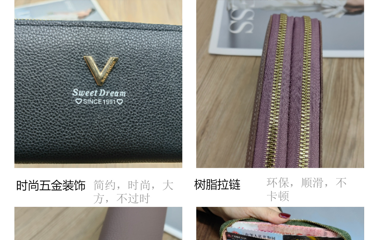 新款女士钱包时尚双层拉链长款手拿包荔枝纹手机包厚多卡位大容量