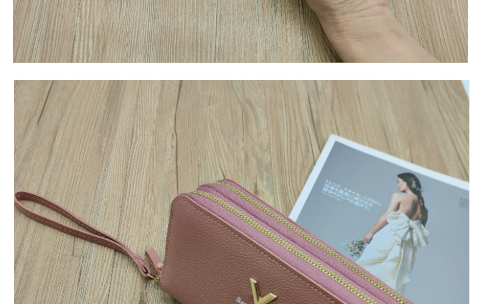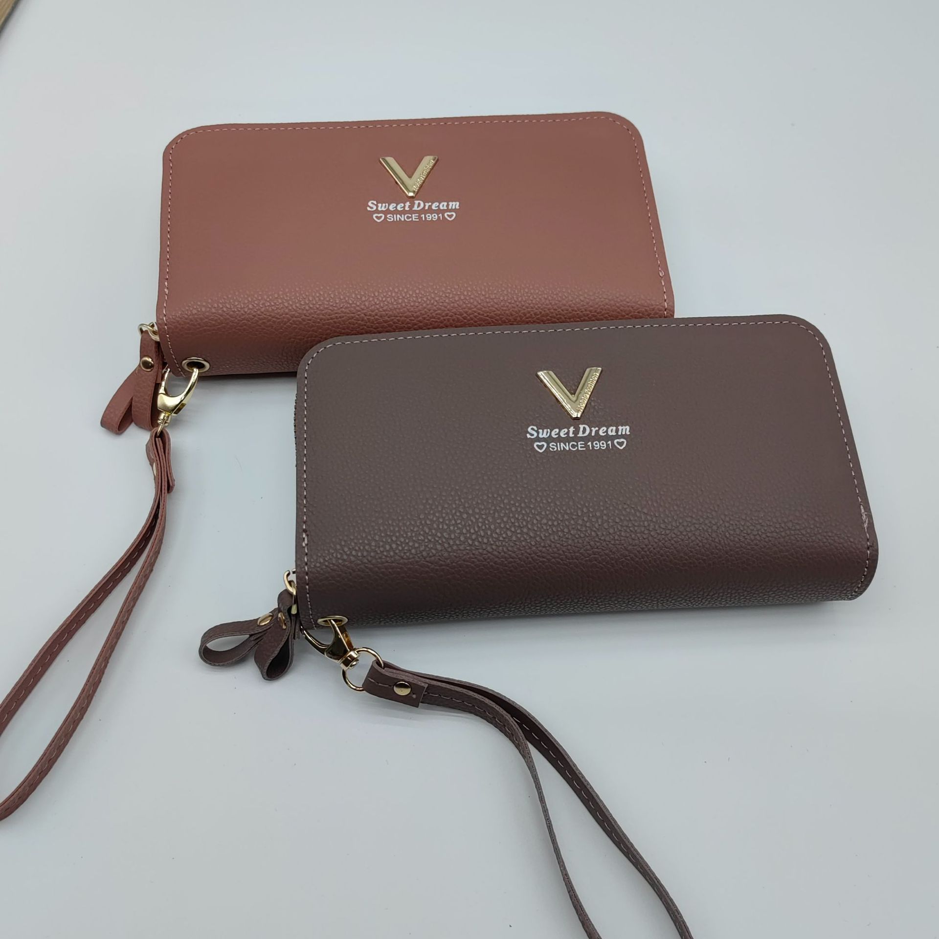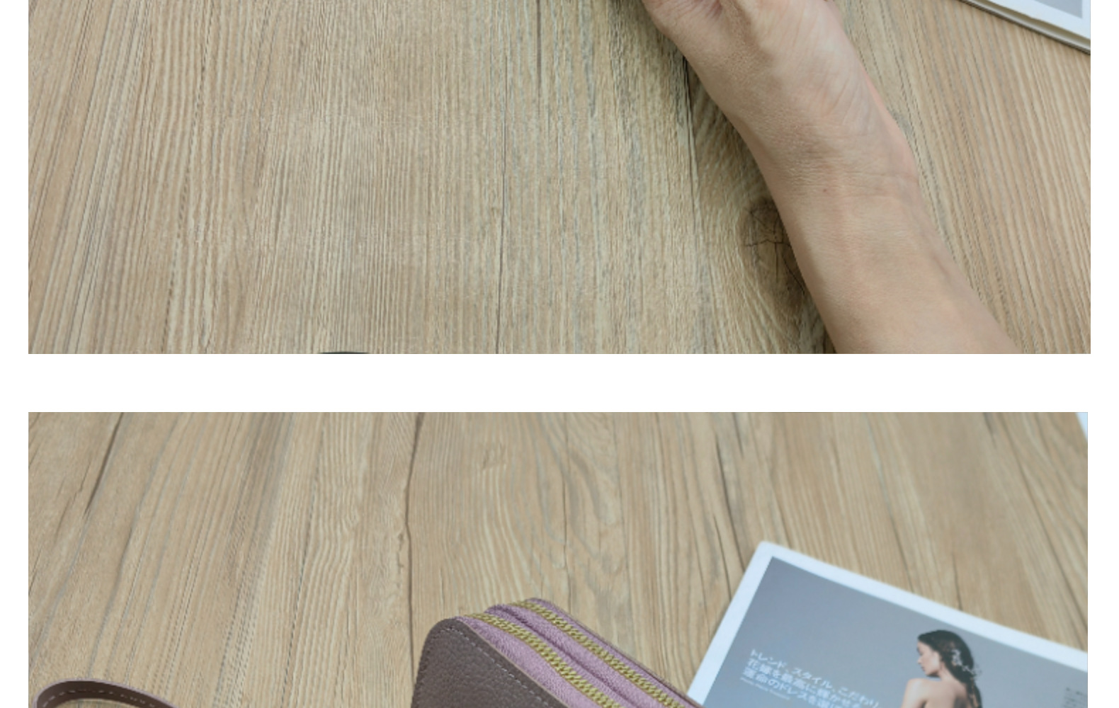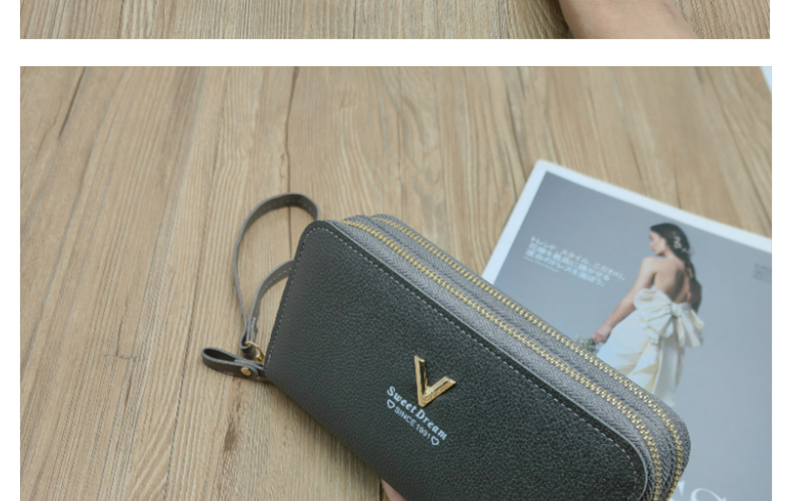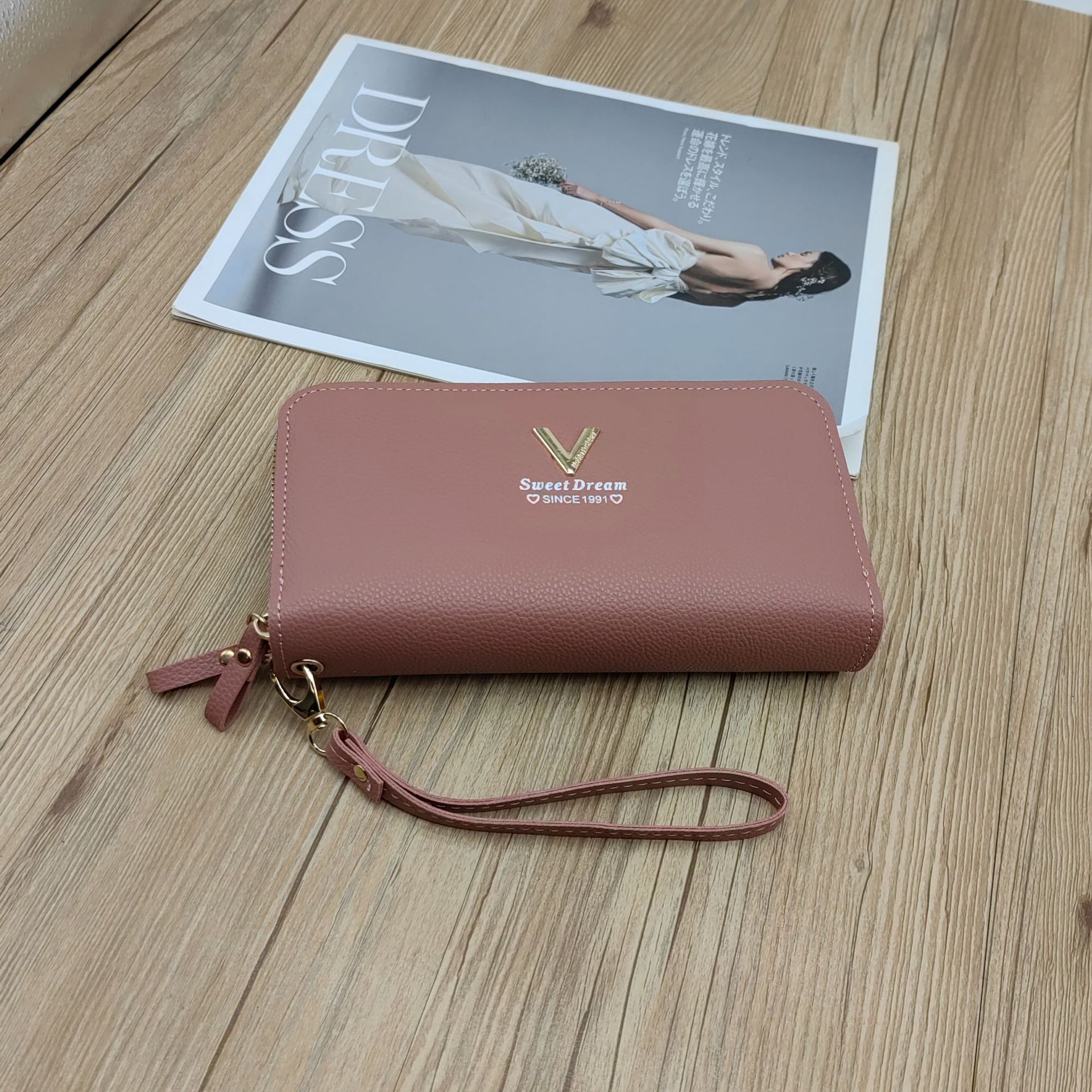 新款女士钱包时尚双层拉链长款手拿包荔枝纹手机包厚多卡位大容量