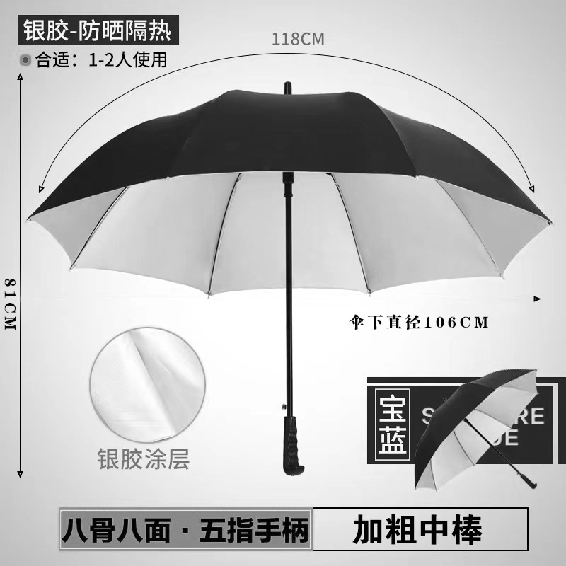 大号长柄直柄防晒雨伞批发可印logo广告雨伞黑胶雨伞晴雨两用礼品