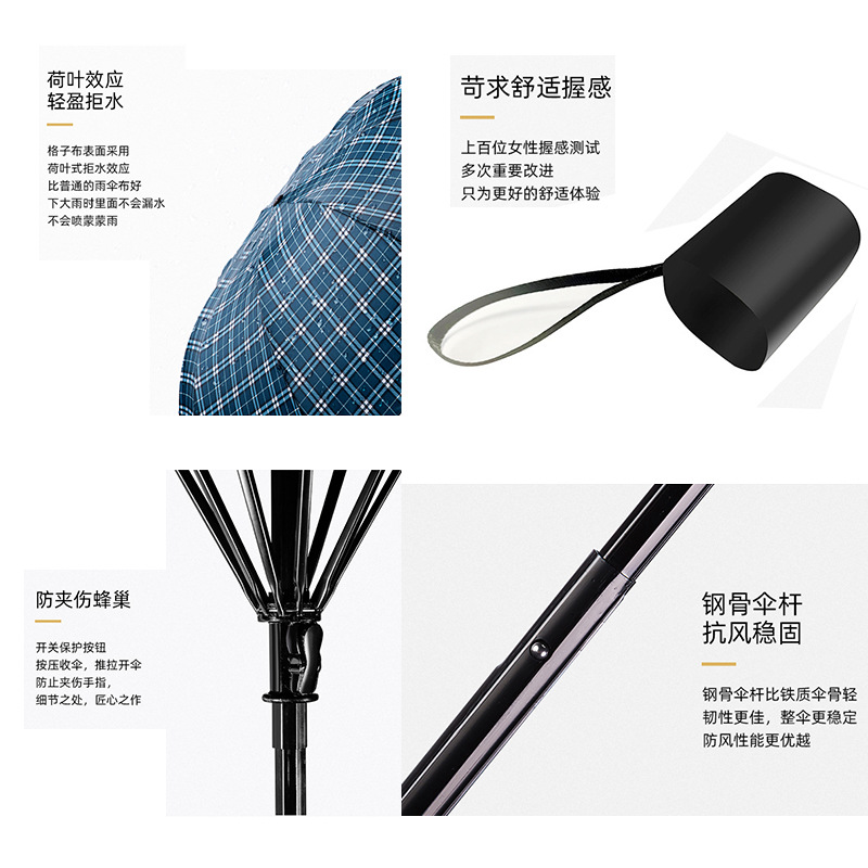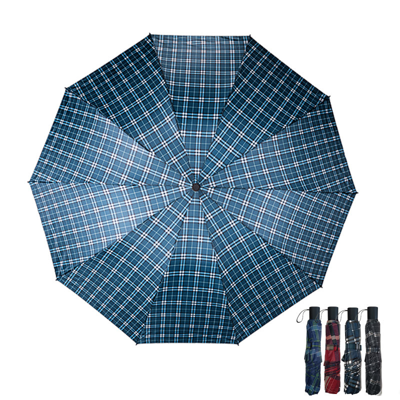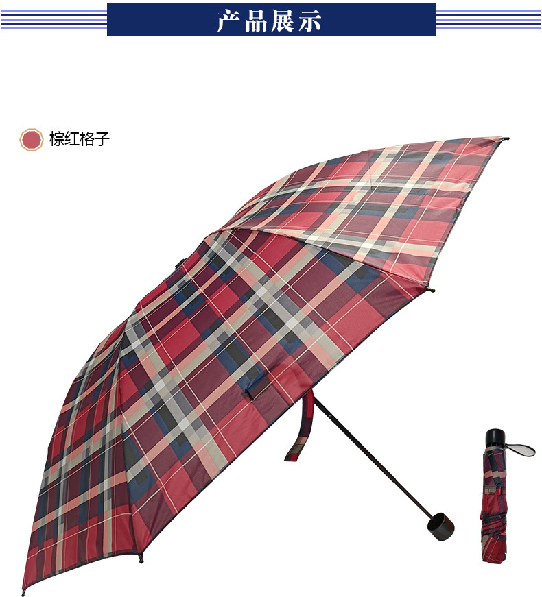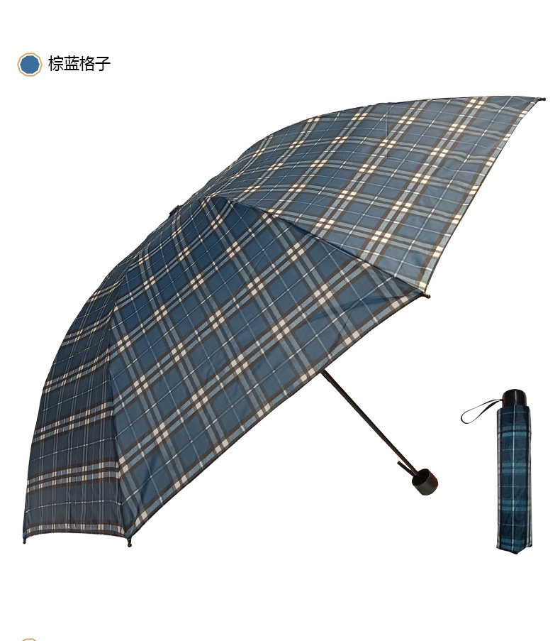 三折大伞面双人折叠伞涤丝格子晴雨伞10骨60cm*10k晴雨两用防暴雨
