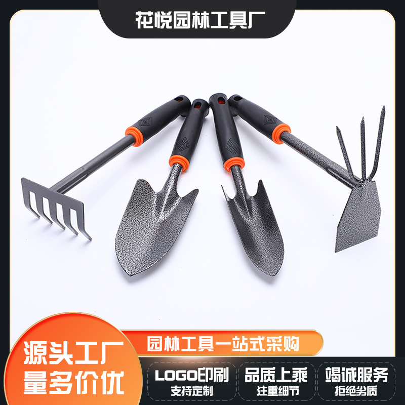 木晨园艺套装花铲五齿耙大铲小铲两用锄黑胶柄四件套园林工具批发