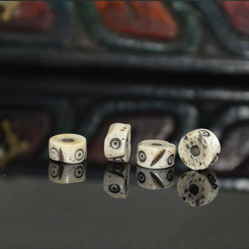 天然牦牛骨手工雕刻桶珠隔片手链配珠diy散珠子多宝藏式文玩1颗