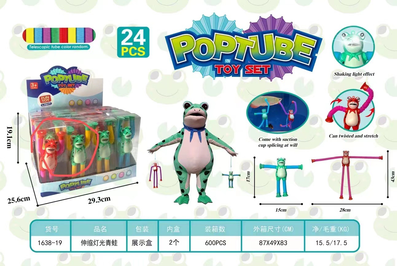 解压玩具发光百变青蛙伸缩管玩具卡通吸盘拉管子亲子互动益智玩具