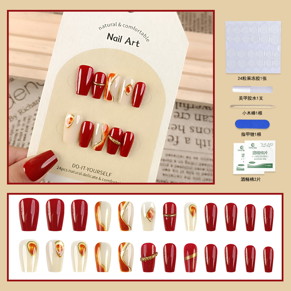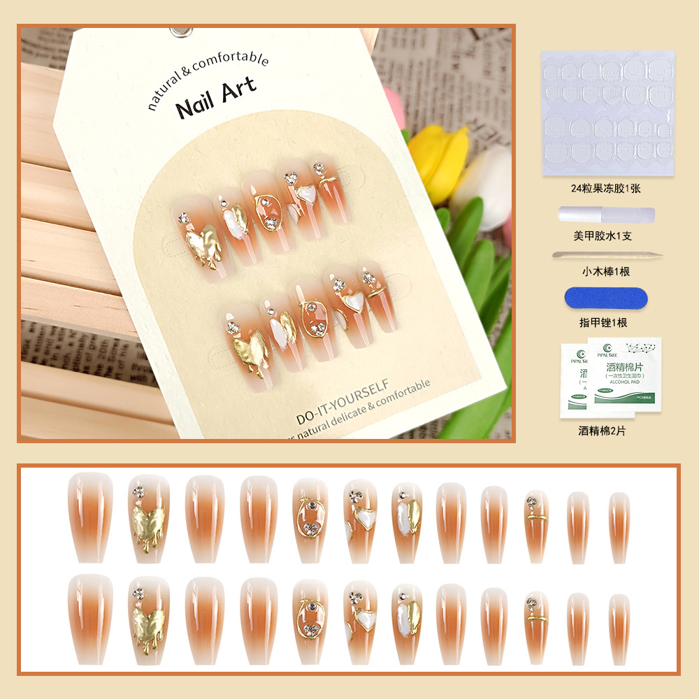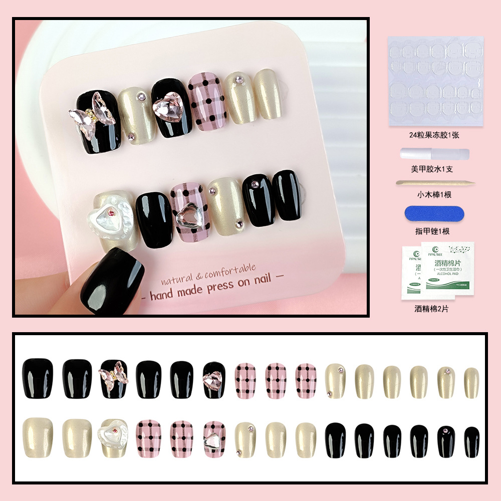 纯手工穿戴甲小红书抖音爆款美甲贴片光疗立体24片假指甲片可拆卸