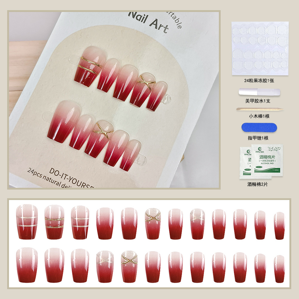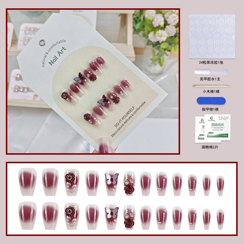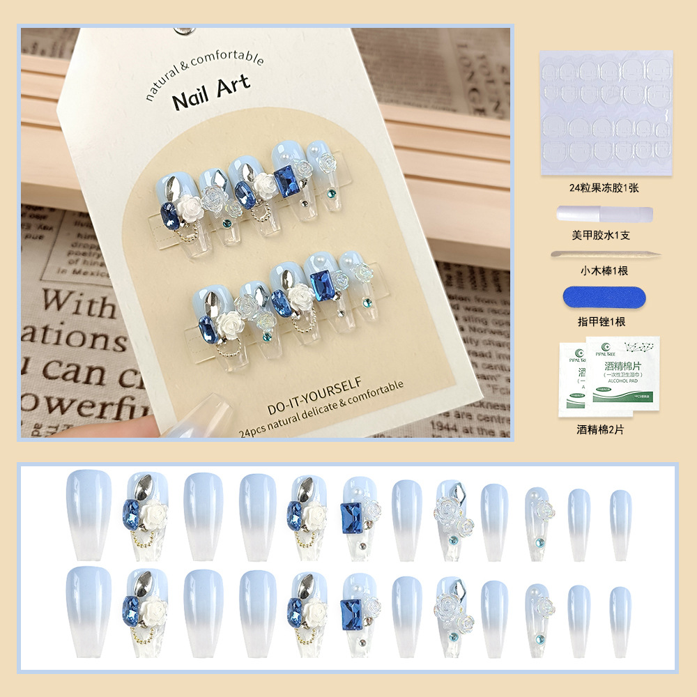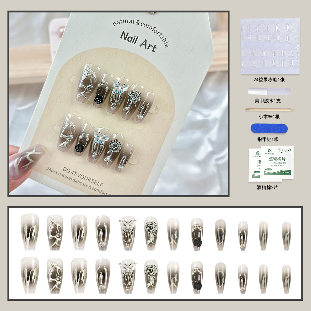纯手工穿戴甲小红书抖音爆款美甲贴片光疗立体24片假指甲片可拆卸