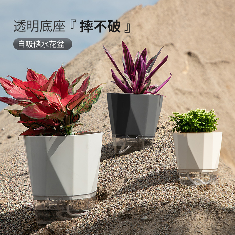 台远水培花盆绿萝文竹自吸水懒人盆阳台桌面塑料免浇水多肉盆透明