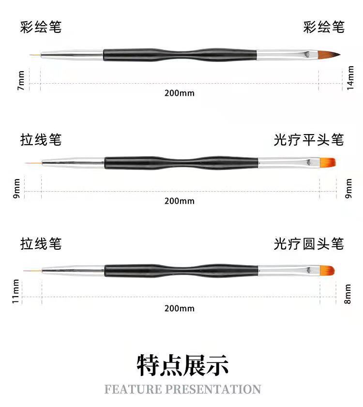 249双头小蛮腰杆3支装美甲笔两用拉线光疗笔勾花勾线美甲工具