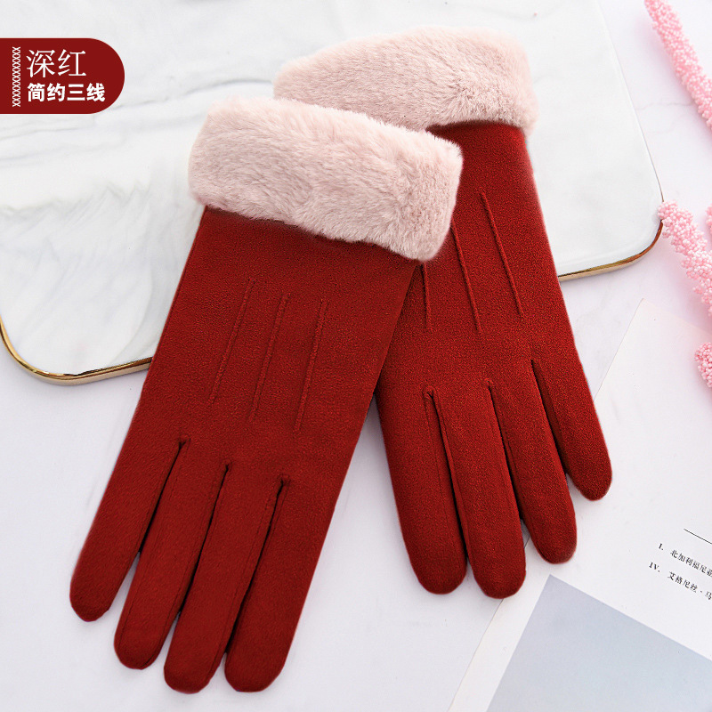 手套触屏保暖手套猫咪麂皮绒毛口骑行防寒抓绒手套可爱女