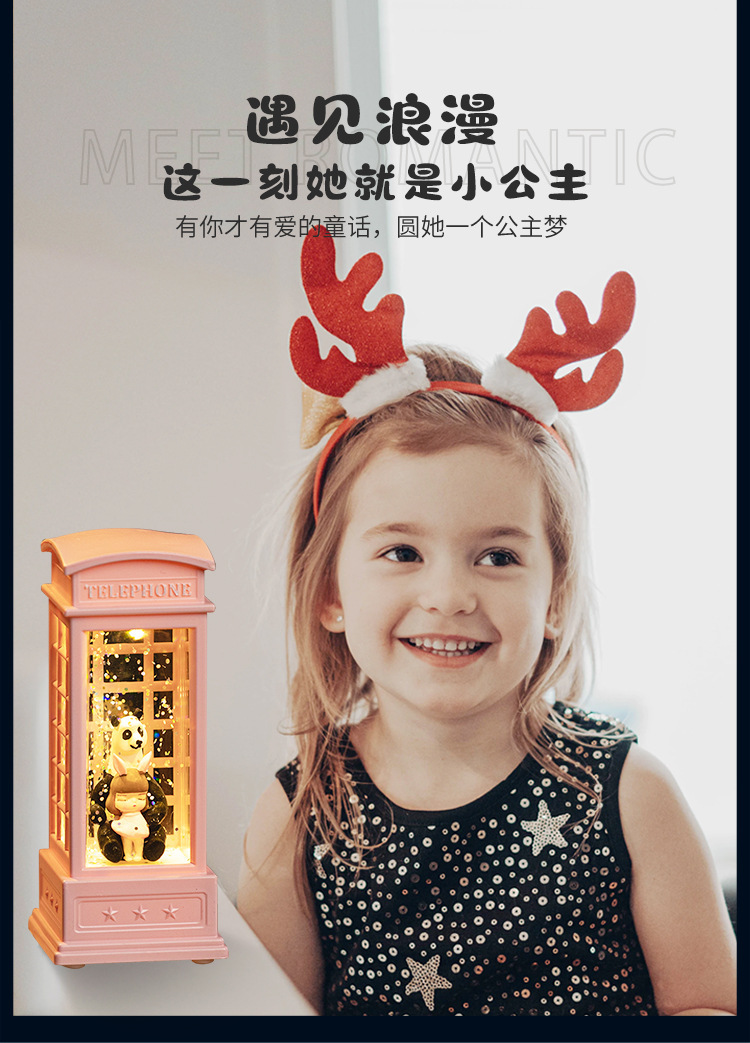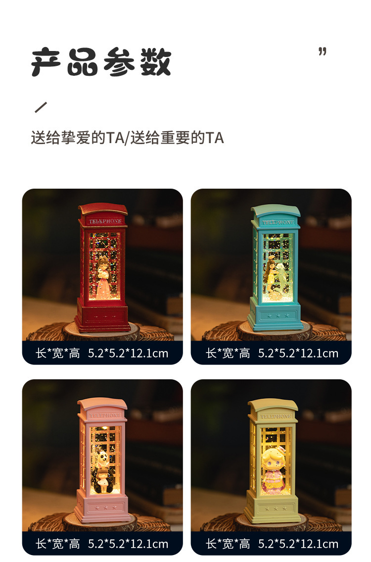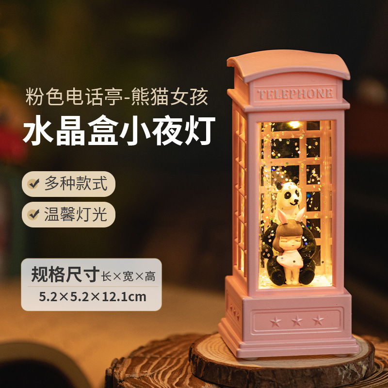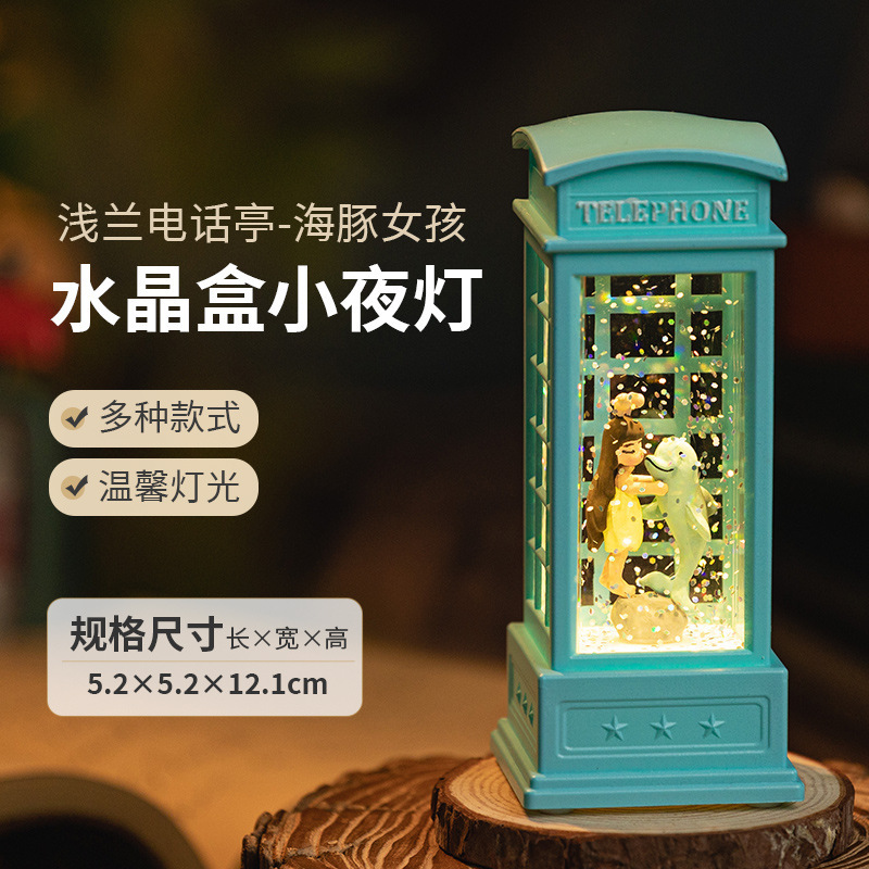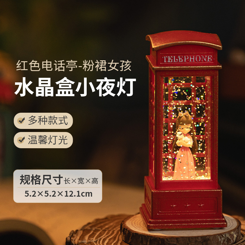 电话亭小夜灯礼物创意可爱桌面装饰摆件女生手办工艺品树脂水晶球