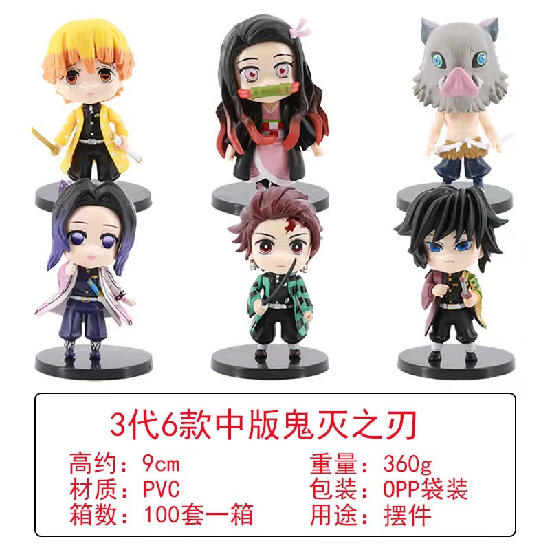 现货秒发袋装鬼灭之刃 灶门炭治郎祢豆子Q版6款鬼灭手办公仔摆件