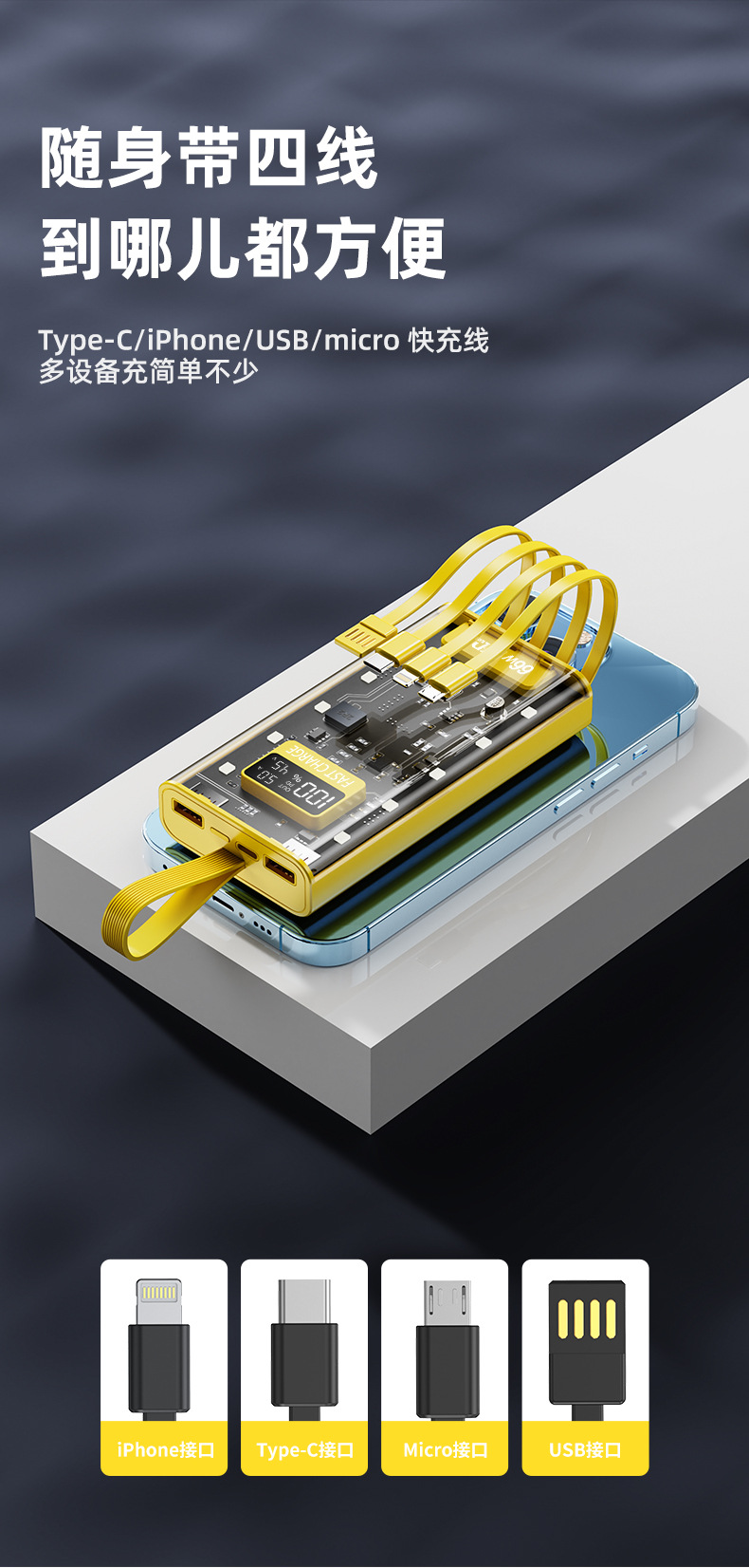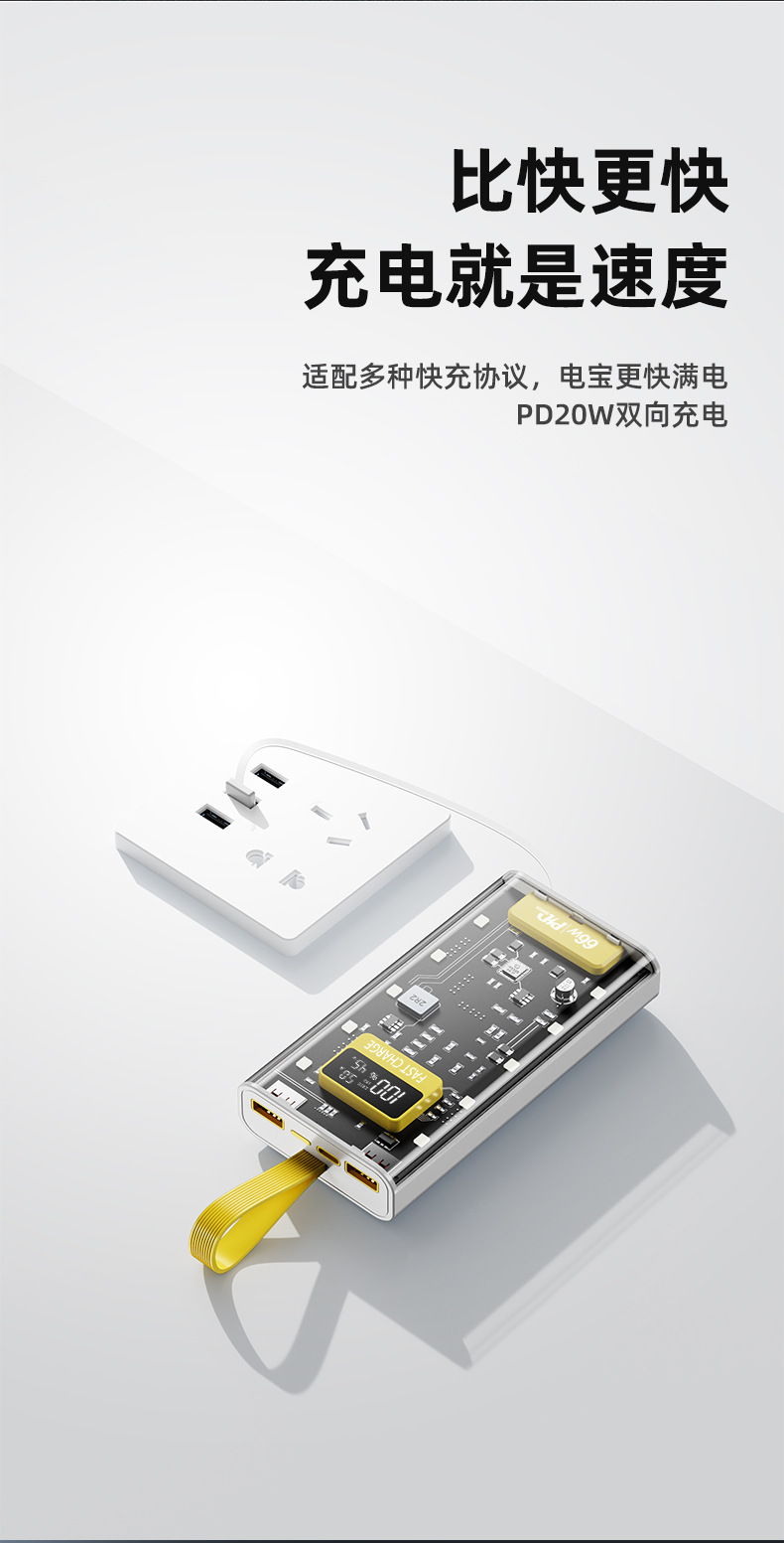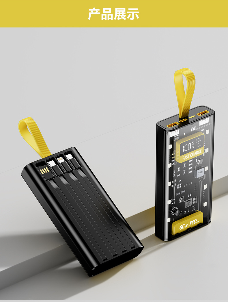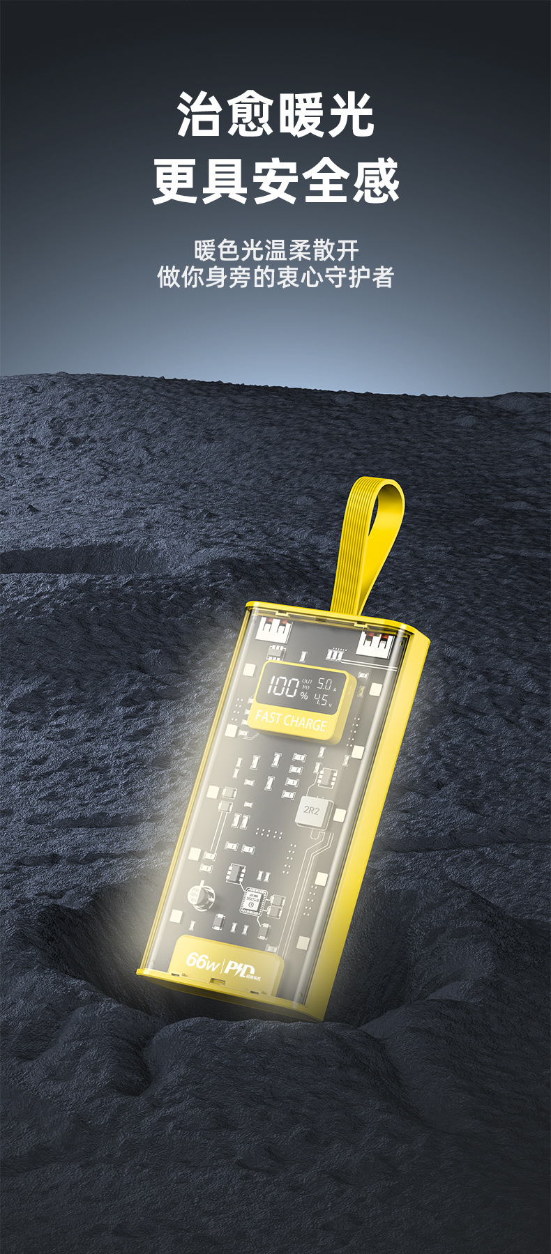 跨境爆款透明带线露营灯户外便携双向PD快充数显移动电源充电宝